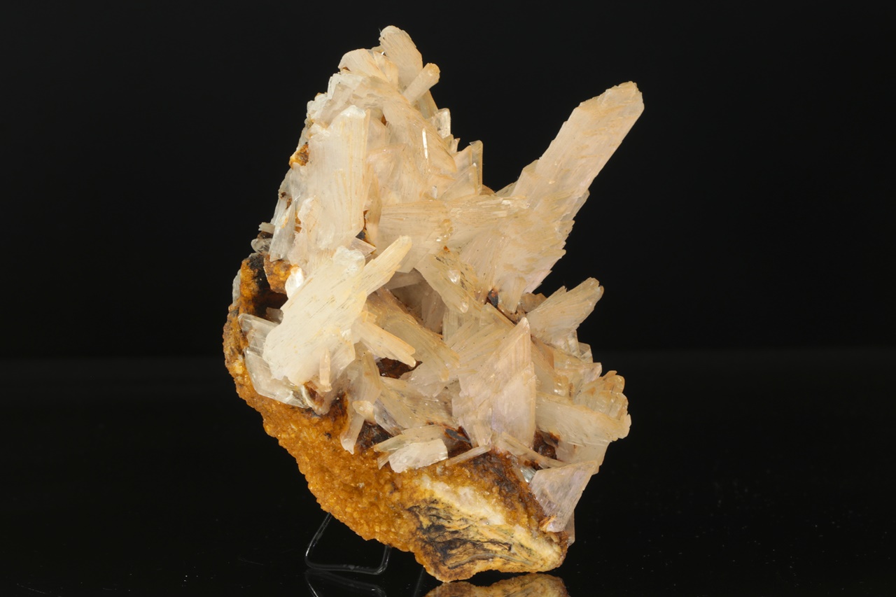 A rich aesthetic specimen of gypsum crystals from a well-known Romanian locality. The translucent crystals grow on a beige dolomite. The largest gypsum crystal is 5 cm in size.