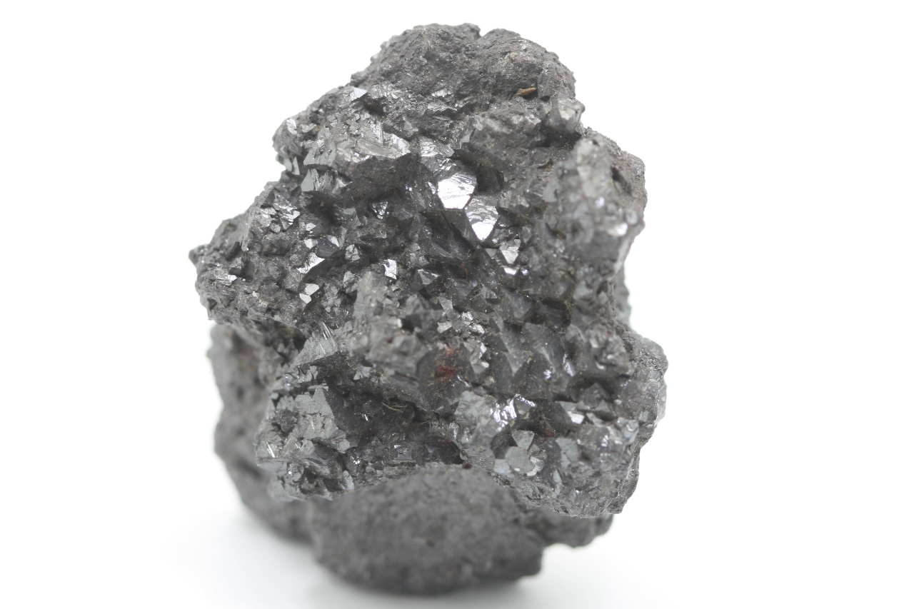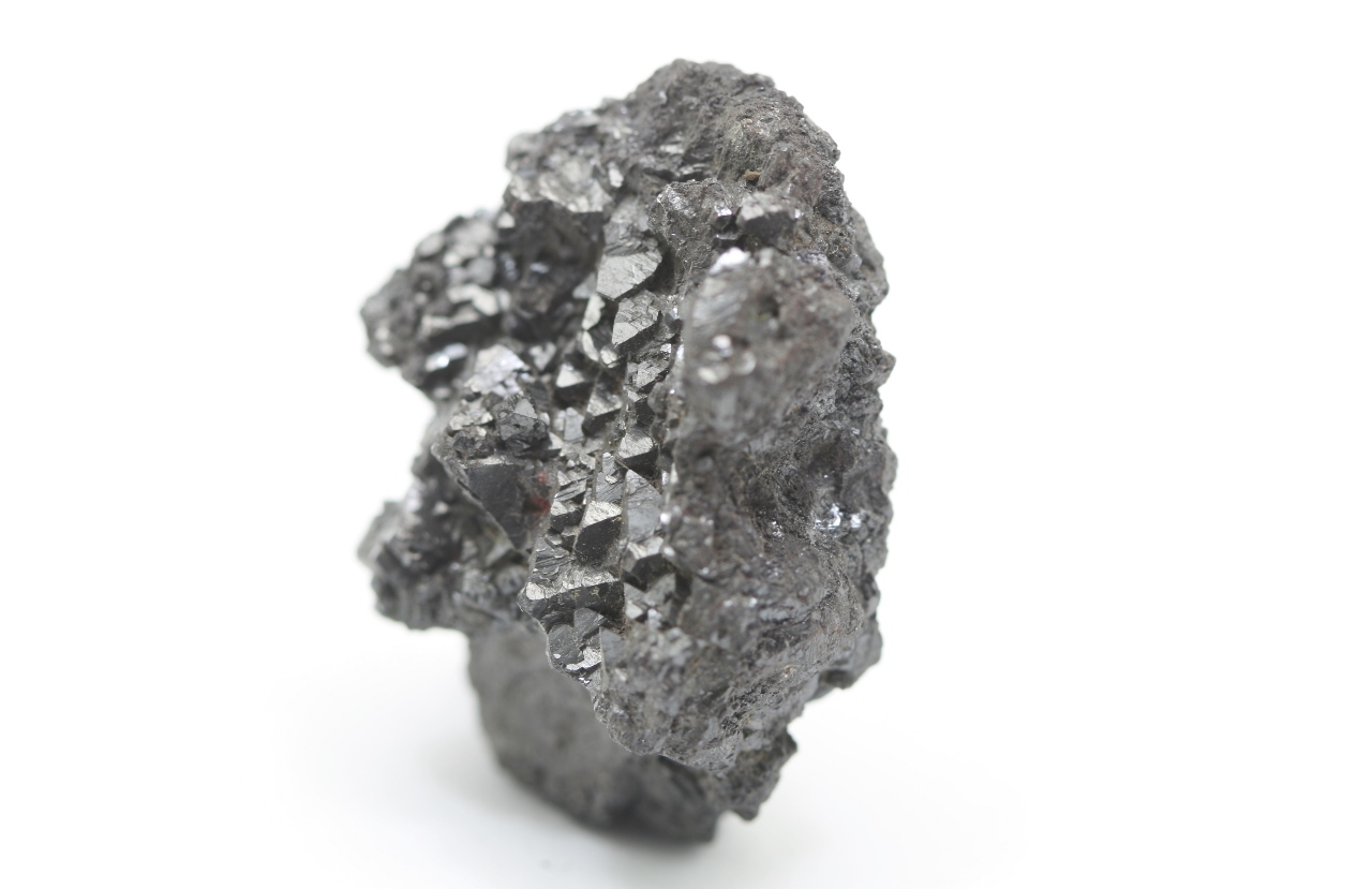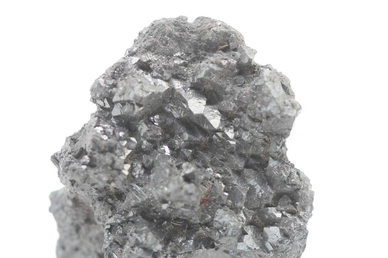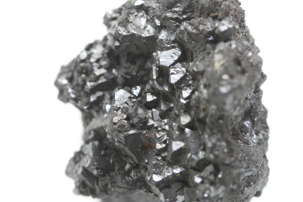 Black matte crystals of manganese spinel. The largest crystal is 3 mm.