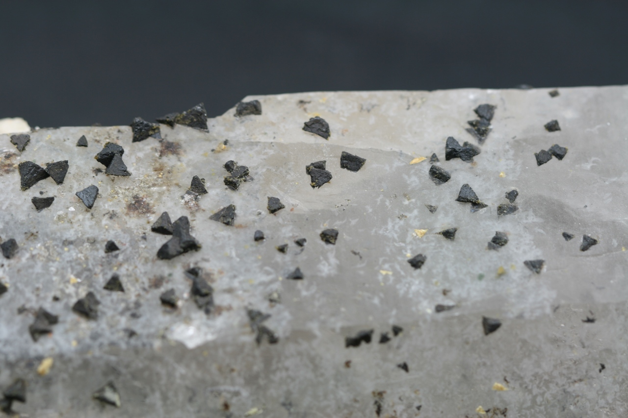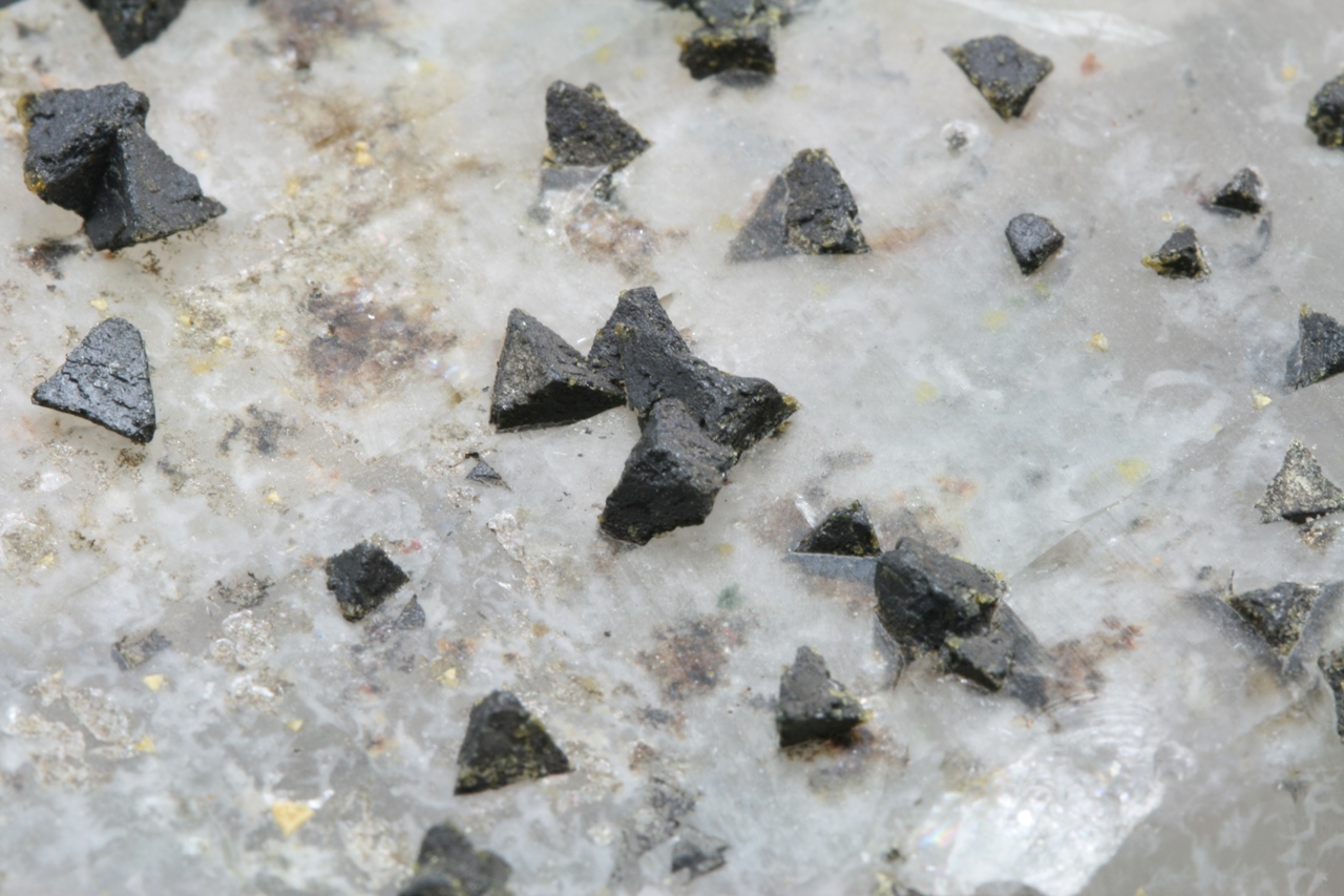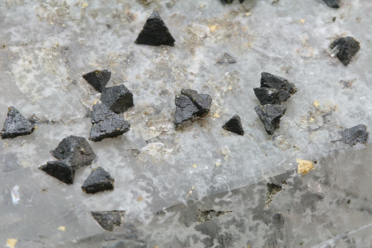 The edge of the largest crystal is 4 mm.
