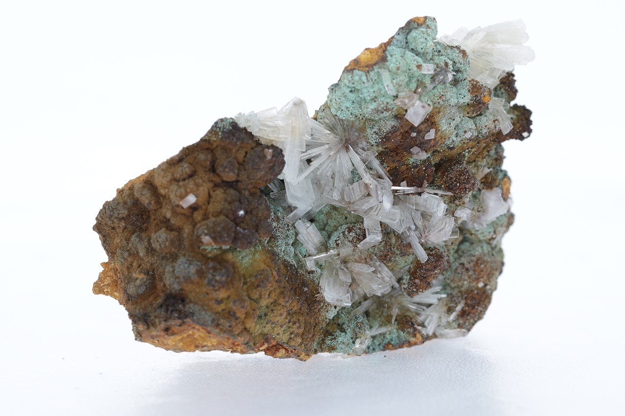 Radial intergrowth of clear zinc silicate crystals. Hemimorphite crystals up to 1.2 cm in size.