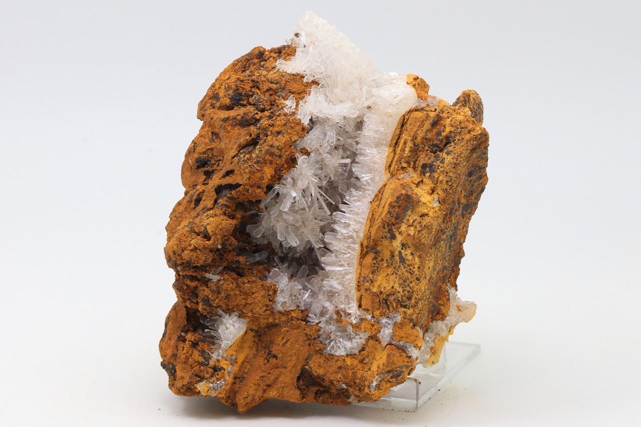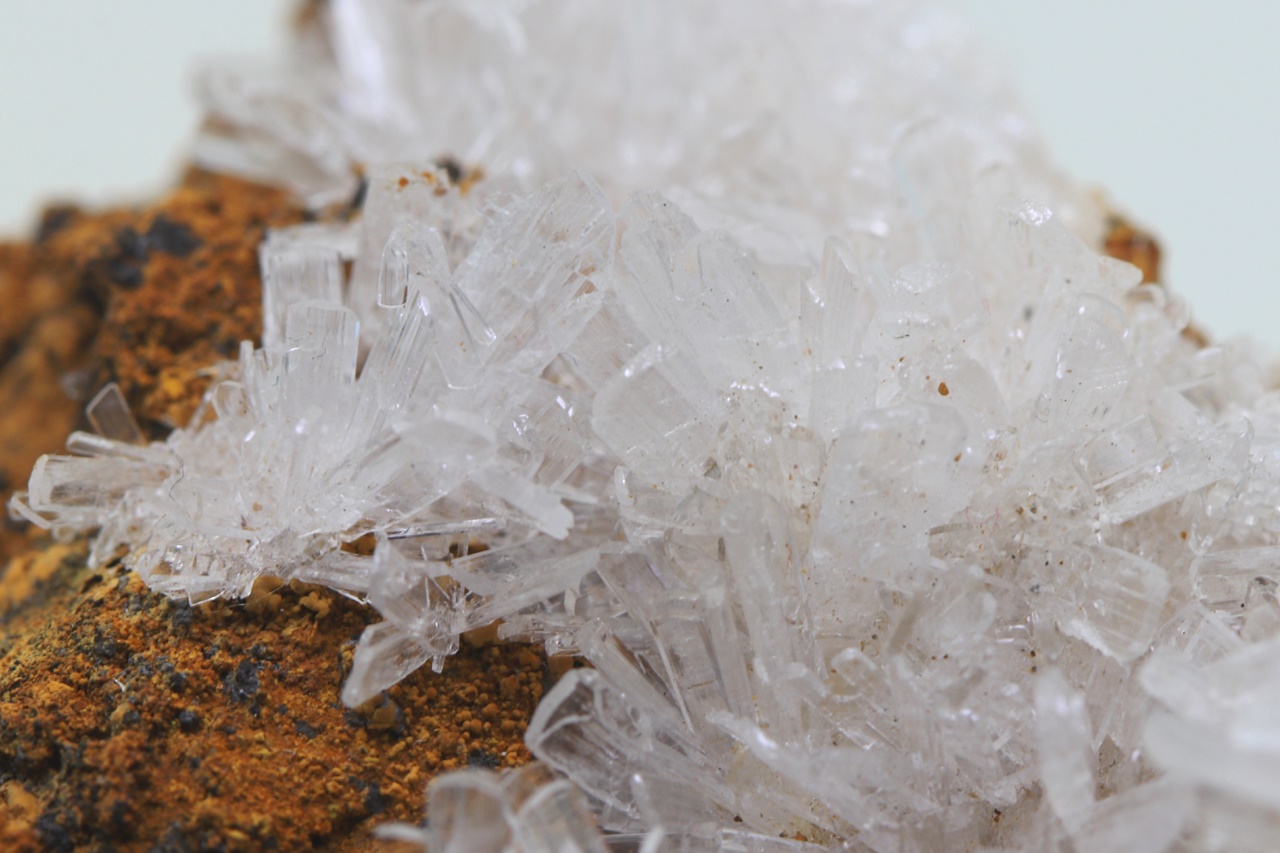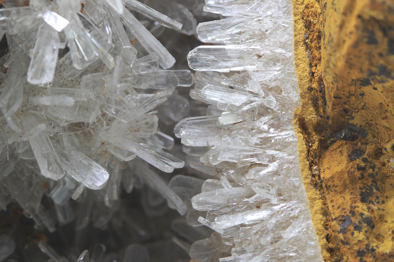 Cavity richly filled with up to 1 cm large, clear hemimorphite crystals.