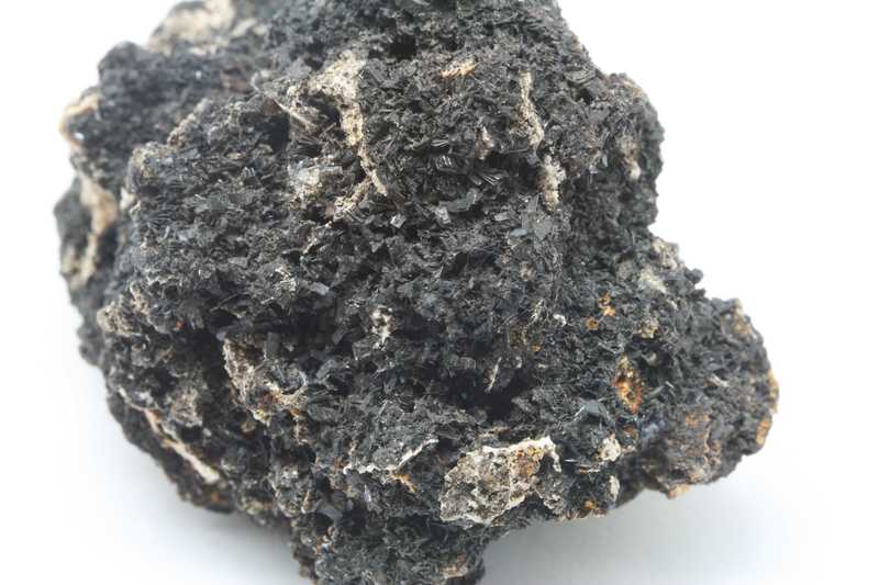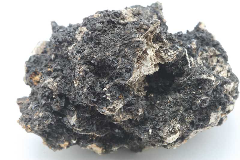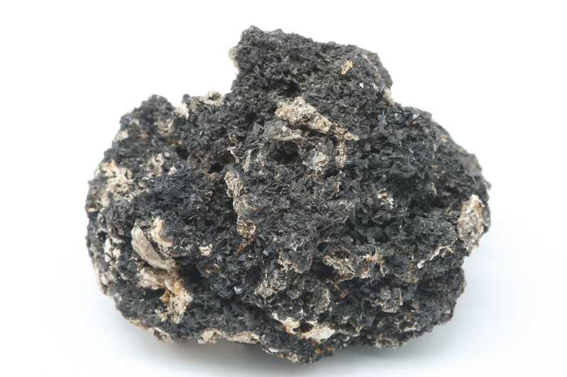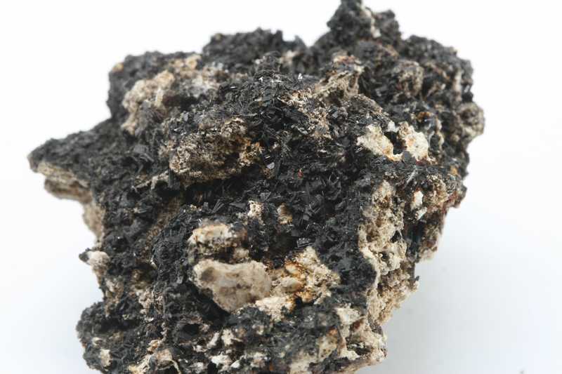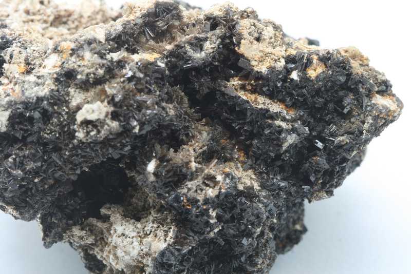 Hemimorphite from the Bleiberg locality, Austria with a historical label. Specimen with black crystals of hemimorphite.