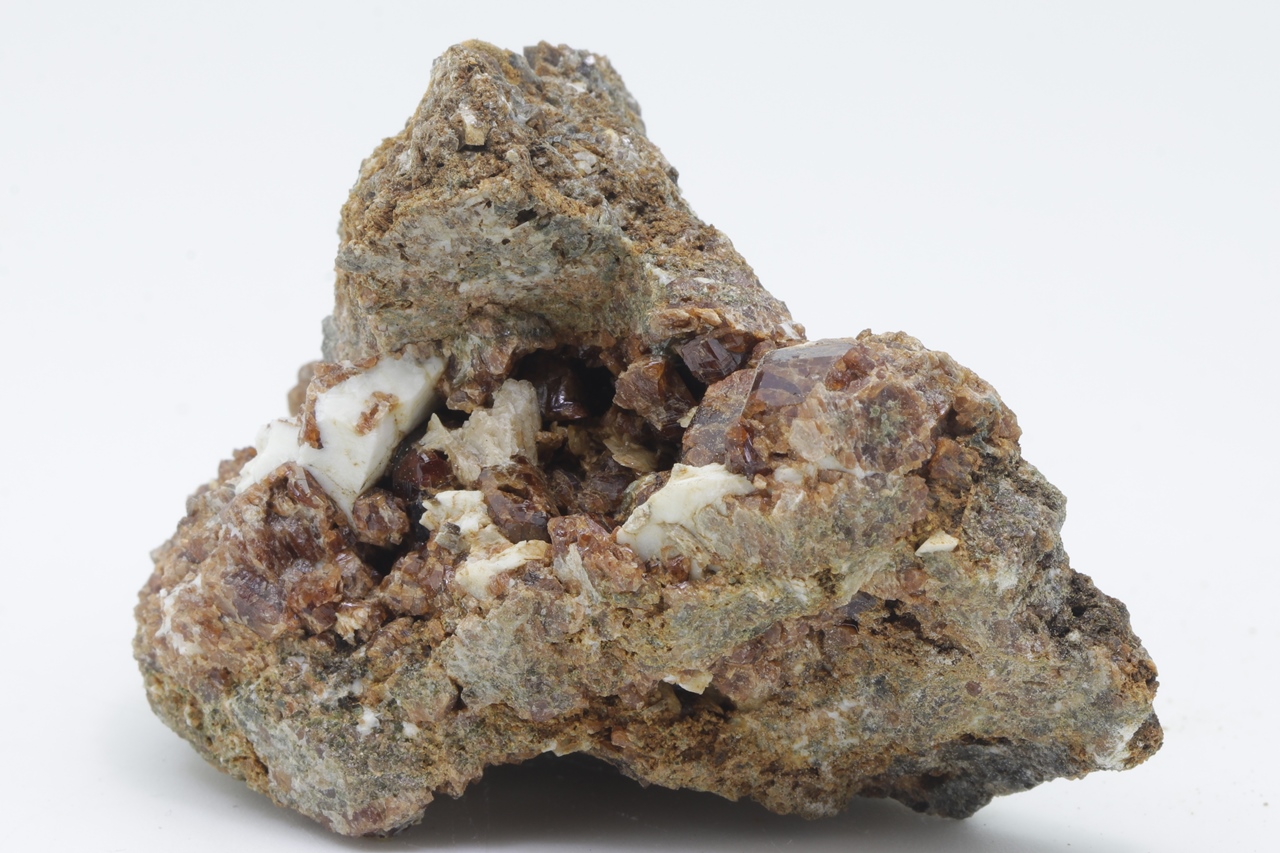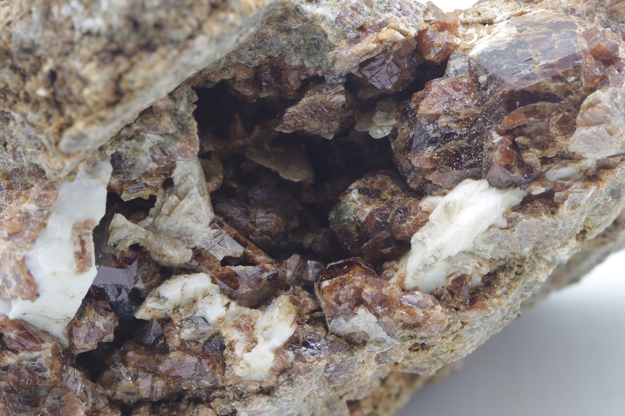 Crystals of shiny, honey-brown Hessonite grown into a cavity.