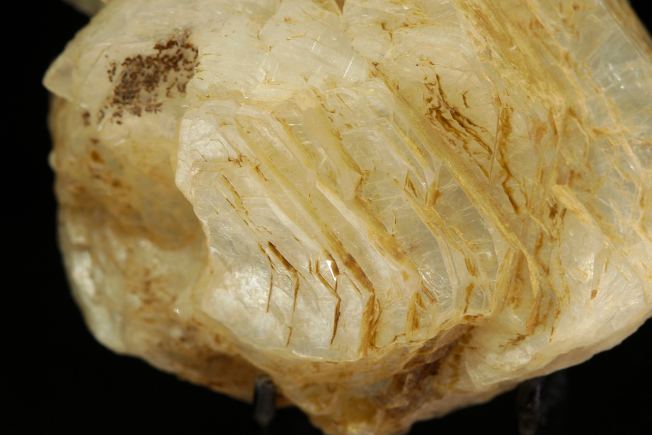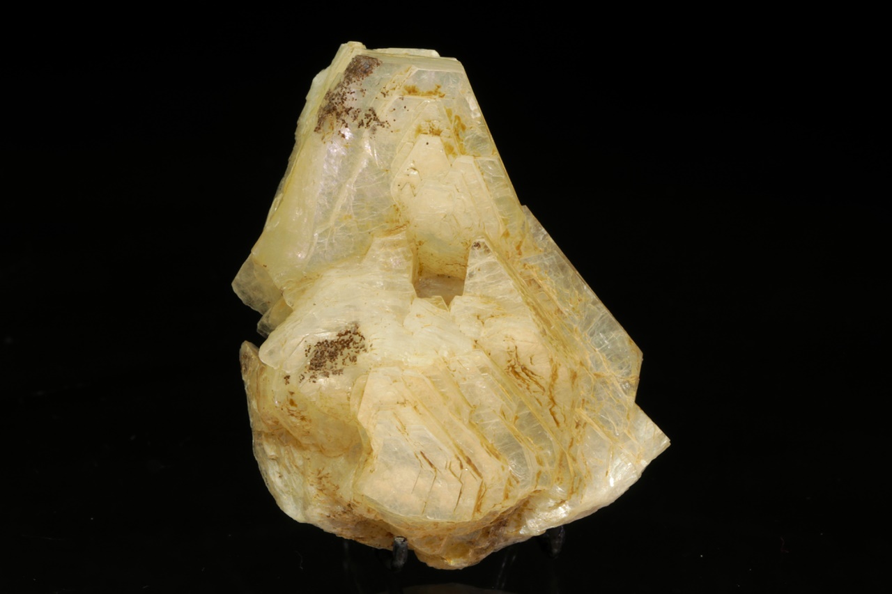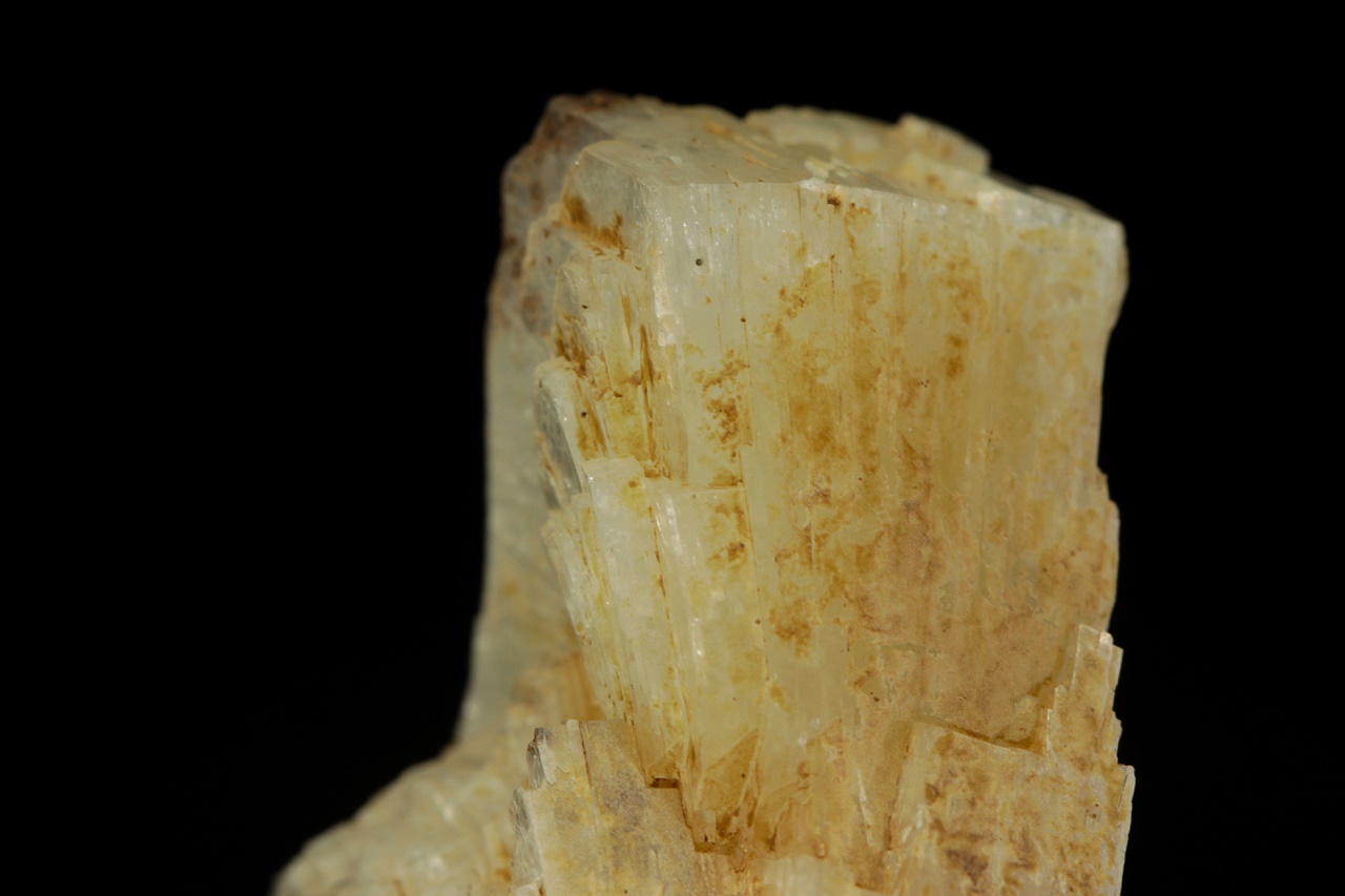 Srostlice krystalů perleťově lesklého heulanditu z bývalého železného dolu.