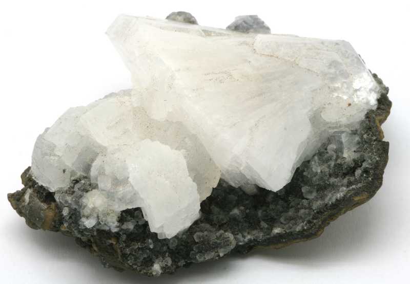 Aesthetic display of heulandite and stellerite crystals. Large fan-shaped aggregate of white heulandite measuring 40 mm from Jalgaon, India