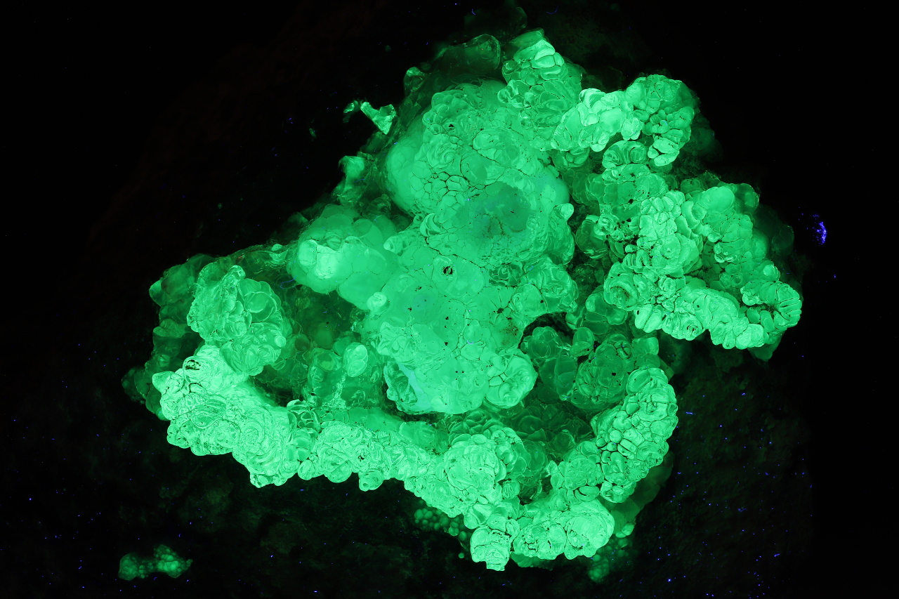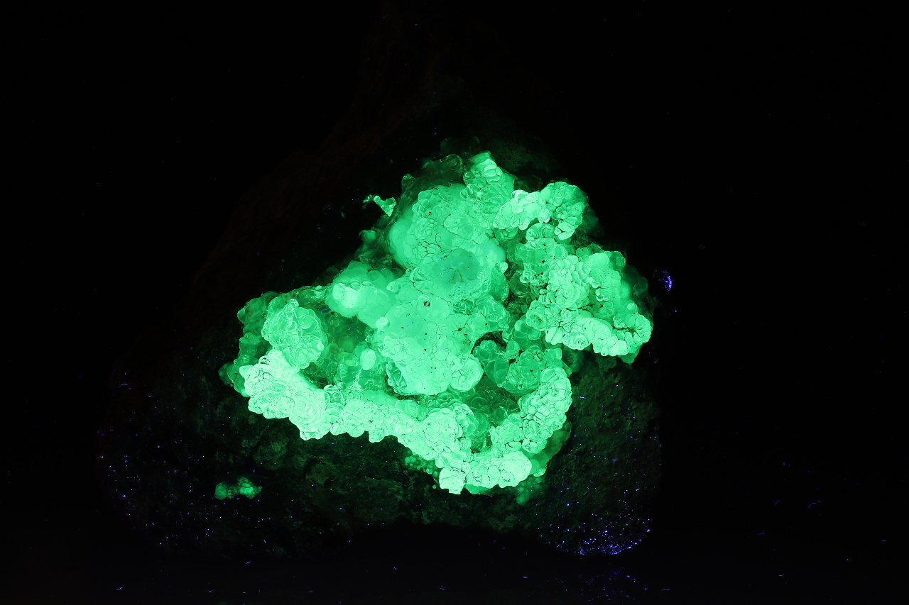 A clear 65 mm crown formed by opal – hyalite, which glows bright yellow-green under UV light.