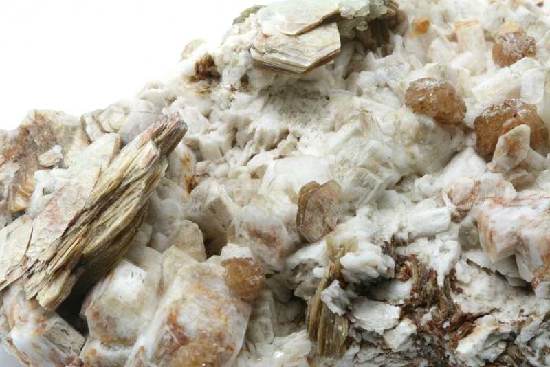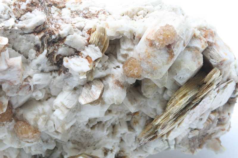 Specimen of hydroxylherderite from Linópolis, Brazil. A beautiful rosettes of hydroxylherderite crystals grown on albite crystals.