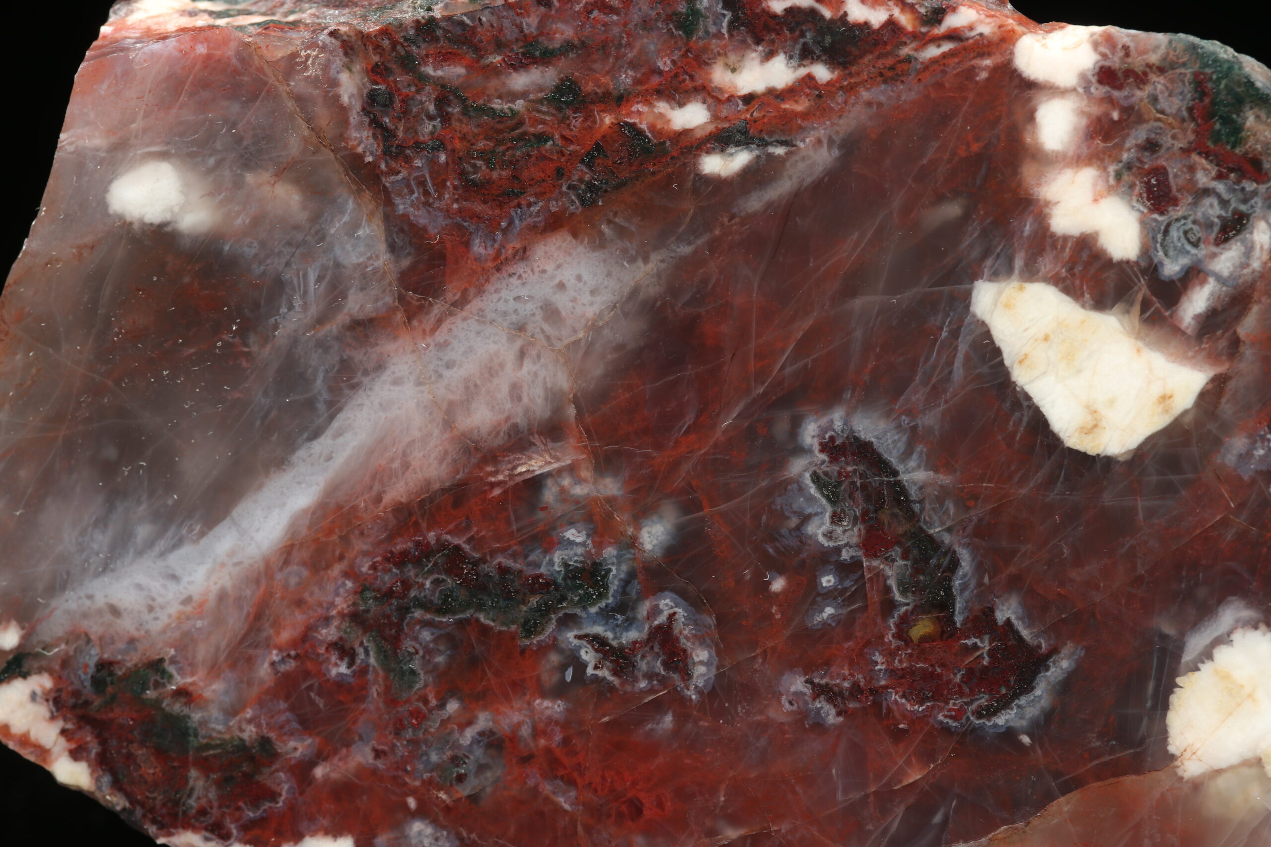Sample of multicolored jasper. The specimen stands out with an interesting pattern and is polished on one side.