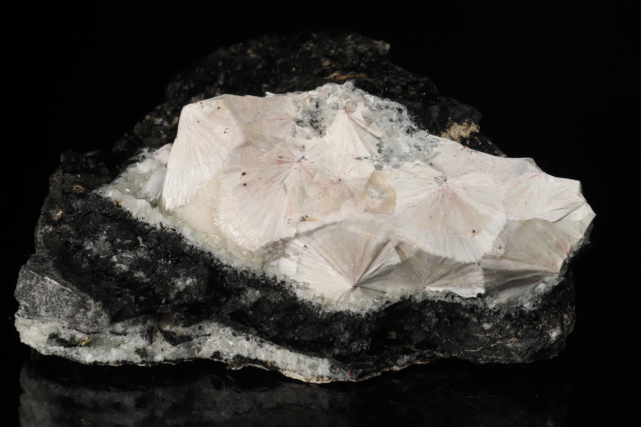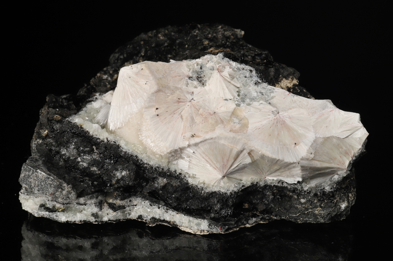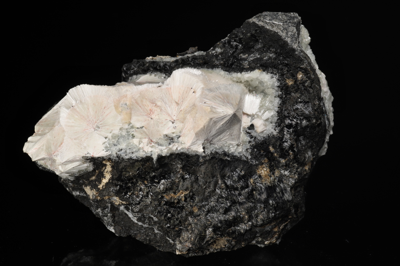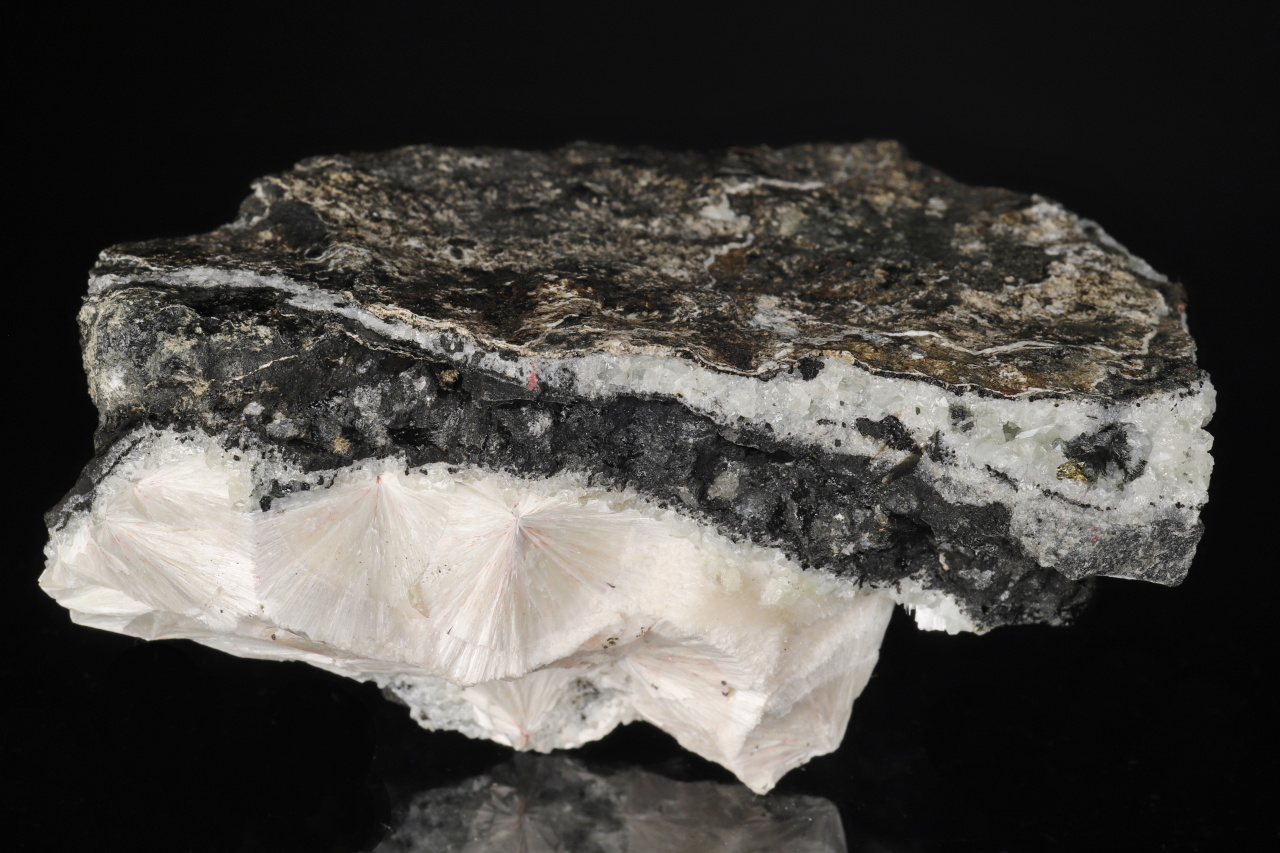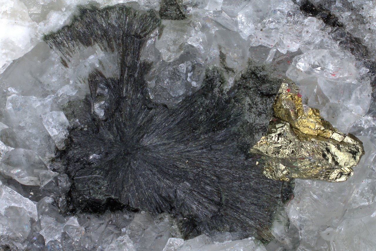 Estetický vzorek bílého až nažloutlého datolitu s jehlicemi do 12 mm na okraji žíly lemovaný drobnými krystaly datolitu. Součástí vzorku v jeho krajní části je v České republice nově popsaný vzácný minerál z pumpellyitové řady julgoldit-Fe2+. Ten tvoří vějířovité agregáty do velikosti 5 mm složené z vláknitých tmavě zelených krystalů v asociaci s pyritem a z lokality nově popsaným datolitem. Na tento minerální druh velmi pěkná ukázka, pocházející z kamenolomu v Košťálově.
