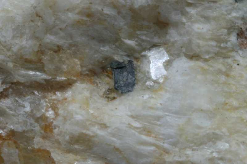 Small grains of rare earth oxide. Approximately 2 mm large grains of columbite.
