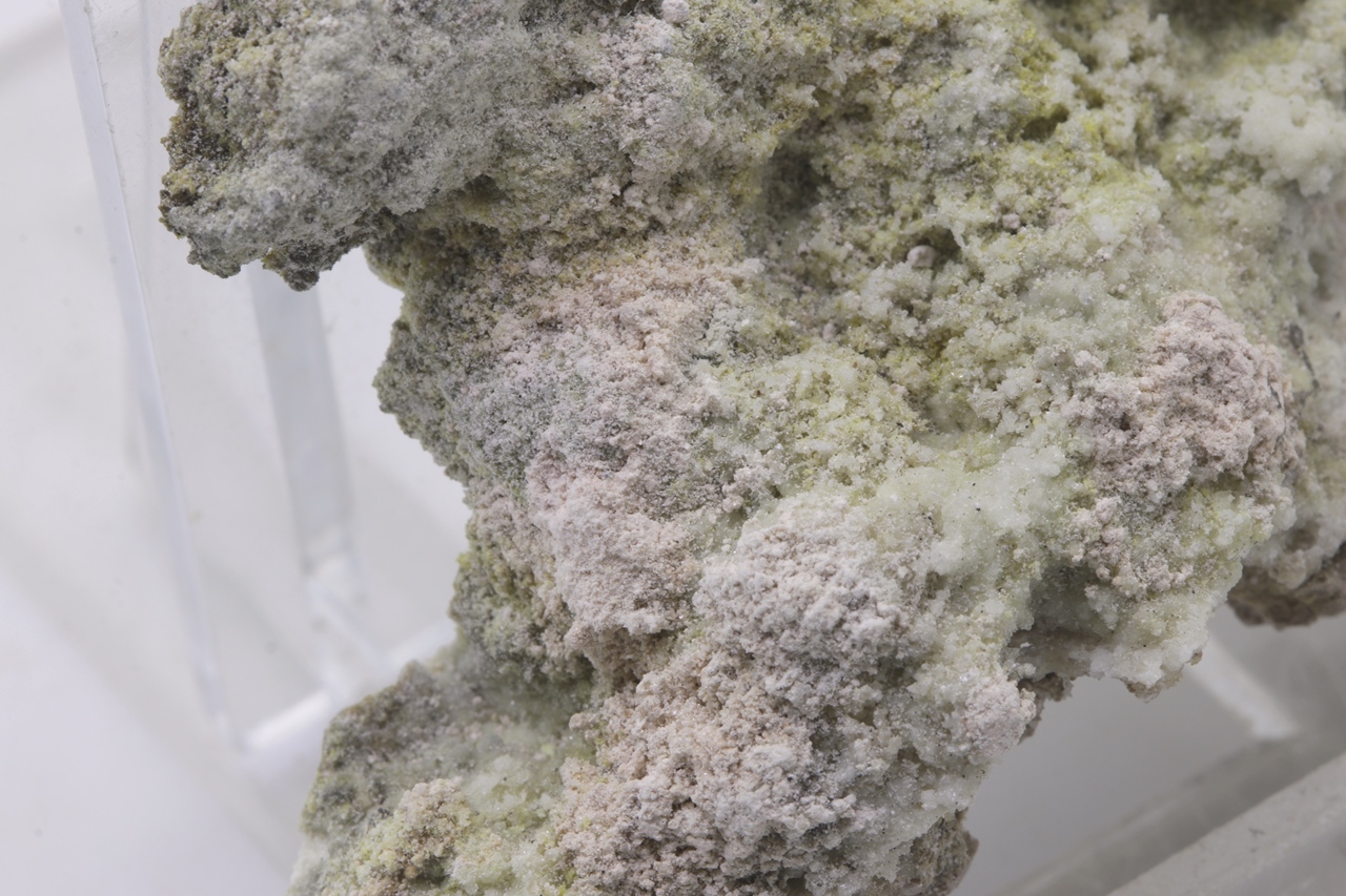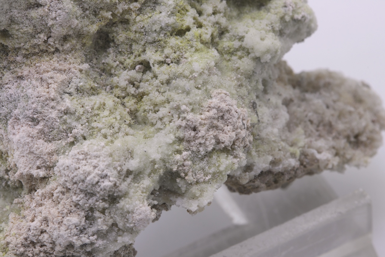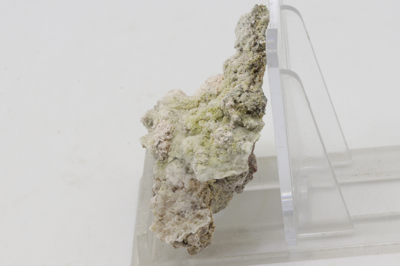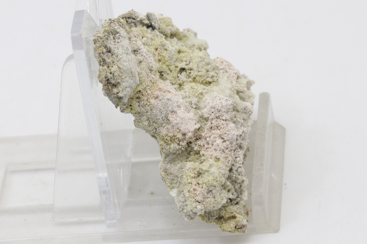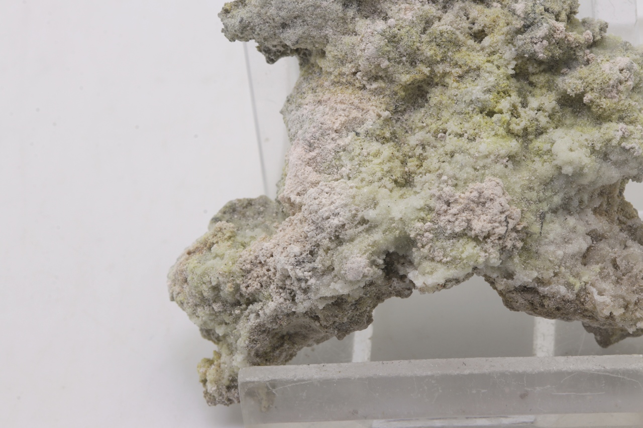 Krautit forms small, hemispherical, and powdery aggregates of pale pink to white-pink color, which occur on the specimen along with pale yellow and colorless crystals of gypsum and often also sit on it. It is a nice example of Krautit from Jáchymov.