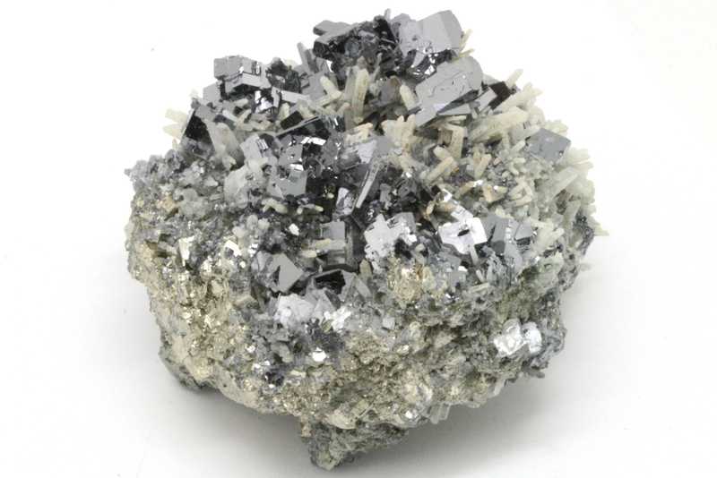 A very aesthetic druse of quartz and highly lustrous galena aggregates. A very nice specimen of minerals typical for the Madan deposit in Bulgaria.