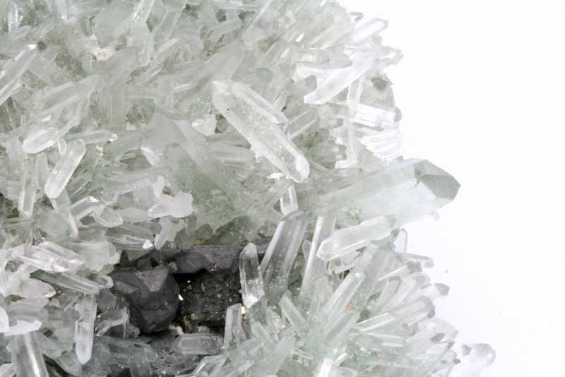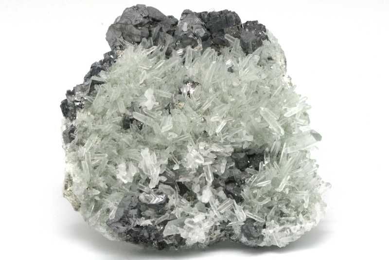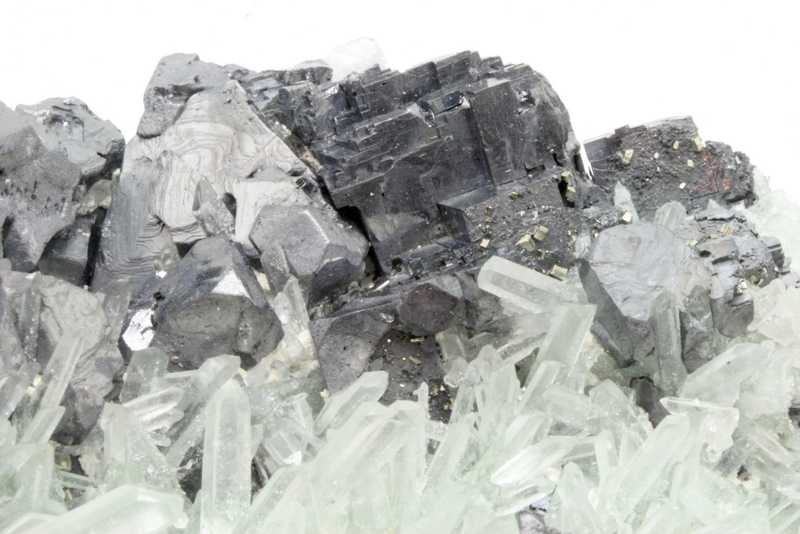 Velmi estetická velká ukázka křišťálové drůzy s japonským dvojčetem, velmi vzácným pro madanské polymetalické ložisko, a galenitem. Velmi pěkná ukázka minerálů typických pro bulharské ložisko Madan. Japonské dvojče je složené z jednotlivých krystalů velkých zhruba 2,5 cm.