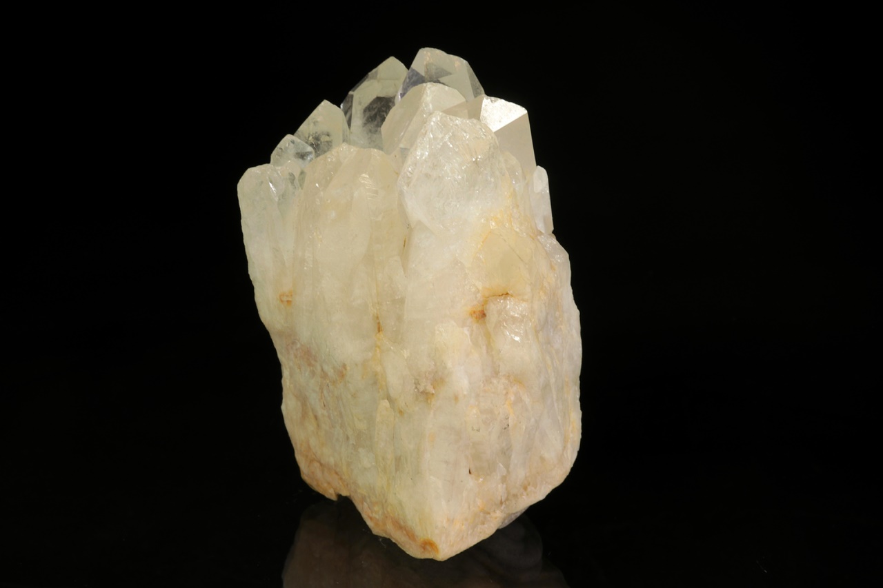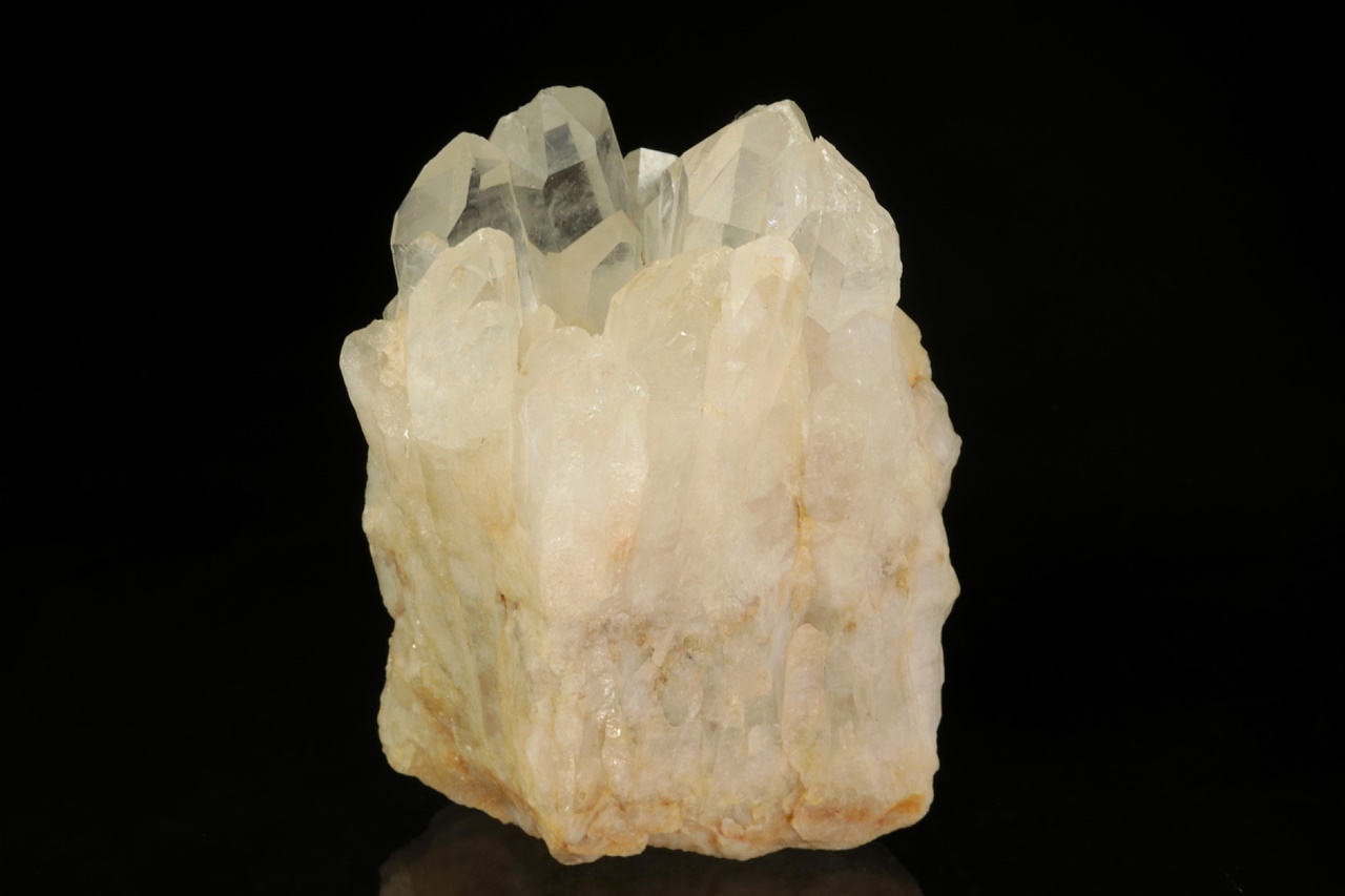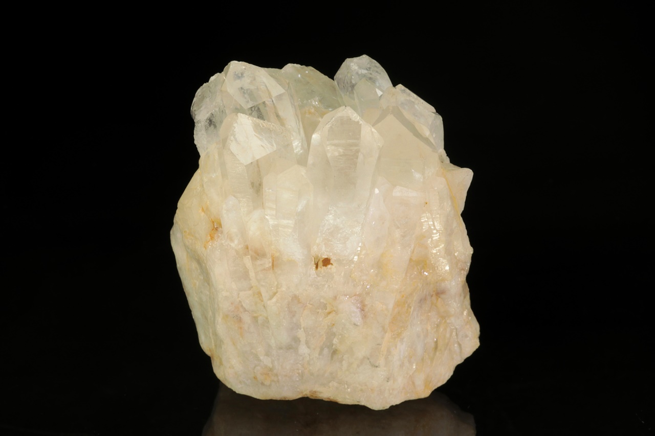 Křemenná žíla zakončená čirými, průhlednými krystaly křemene až 3 cm velkými.