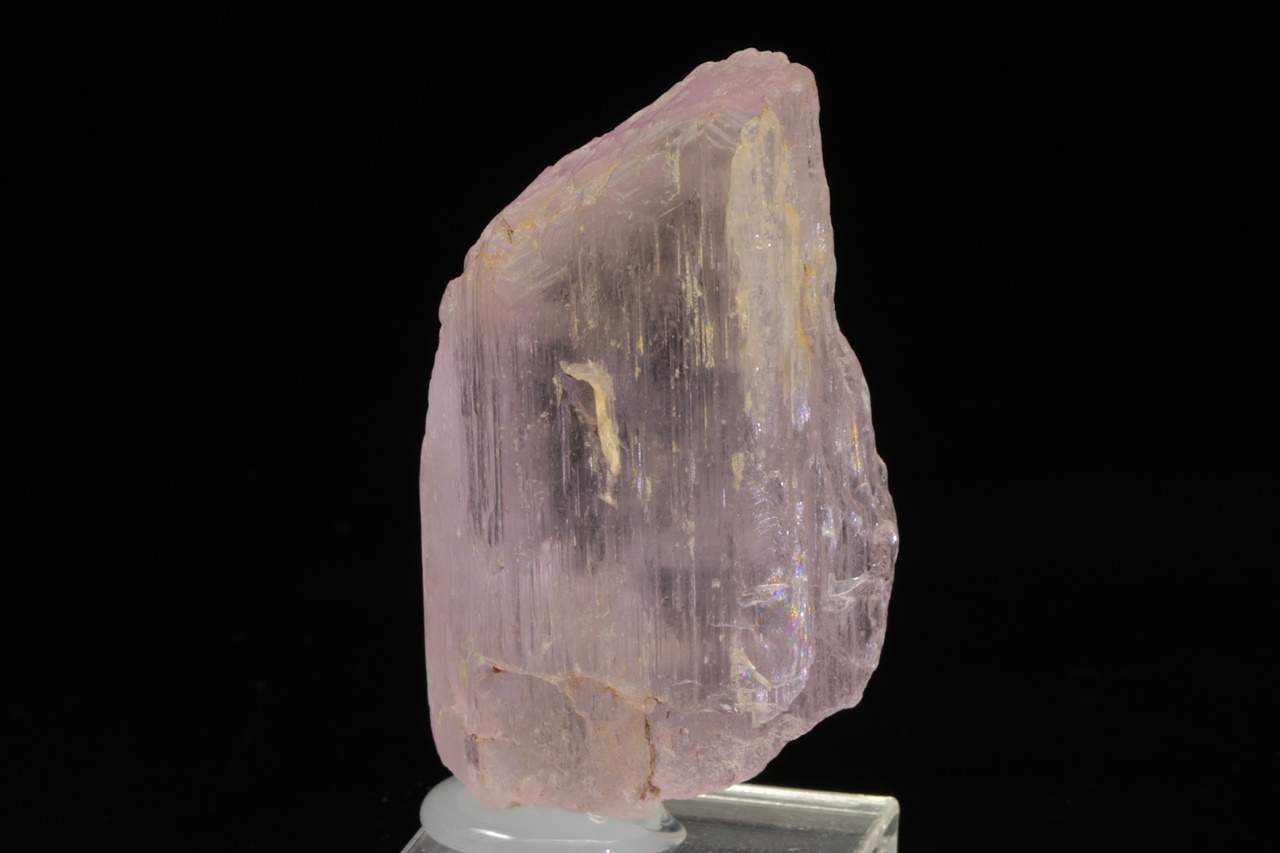 Light pink, transparent crystal of pink kunzite of gem quality.