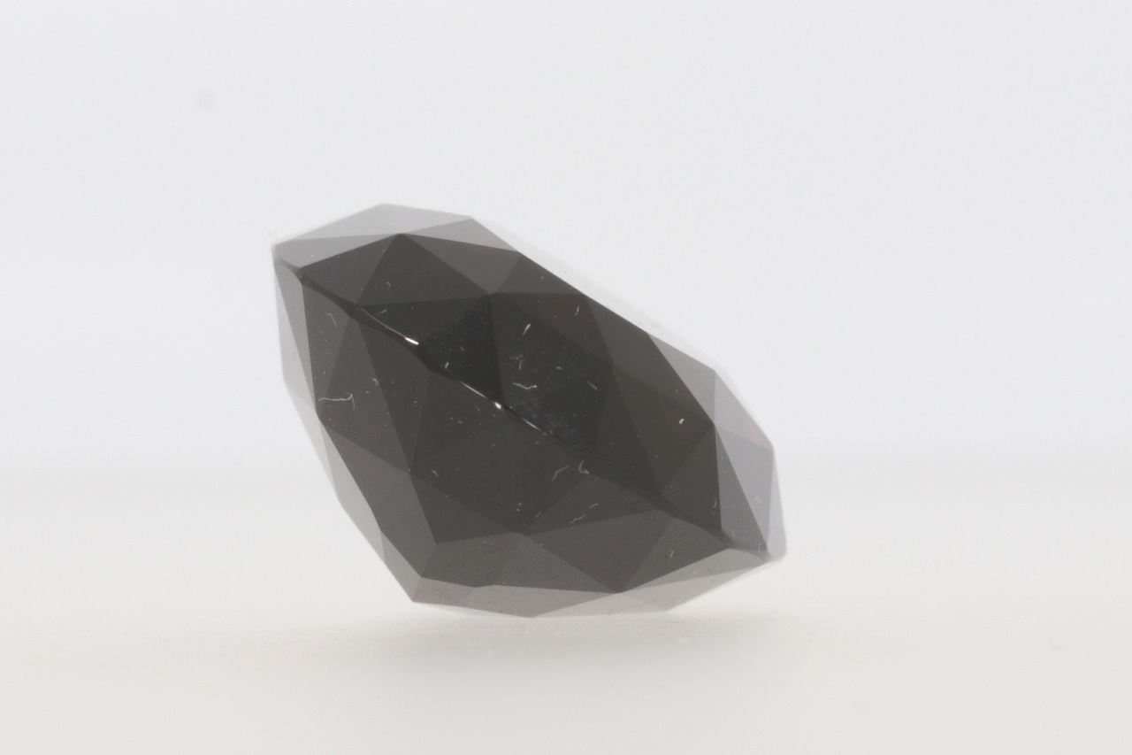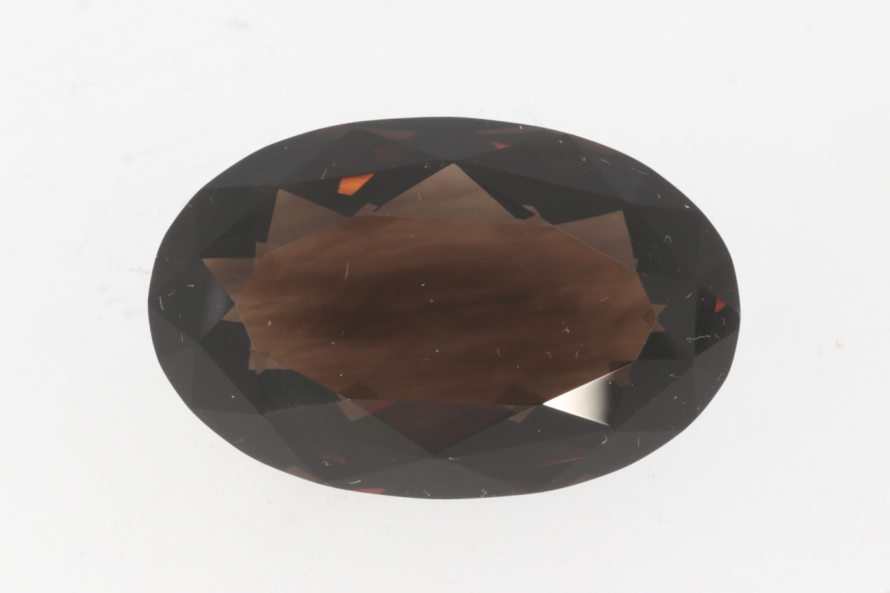 The faceted oval with an intense brown color features cloud-like patches of a darker hue in the central part, giving this stone an unusual dynamic. This interesting smoky quartz weighing 46.5 ct is absolutely clean and without inclusions. The stone was cut by Svatopluk Prchlík and was originally in the Josef Cvačka collection.