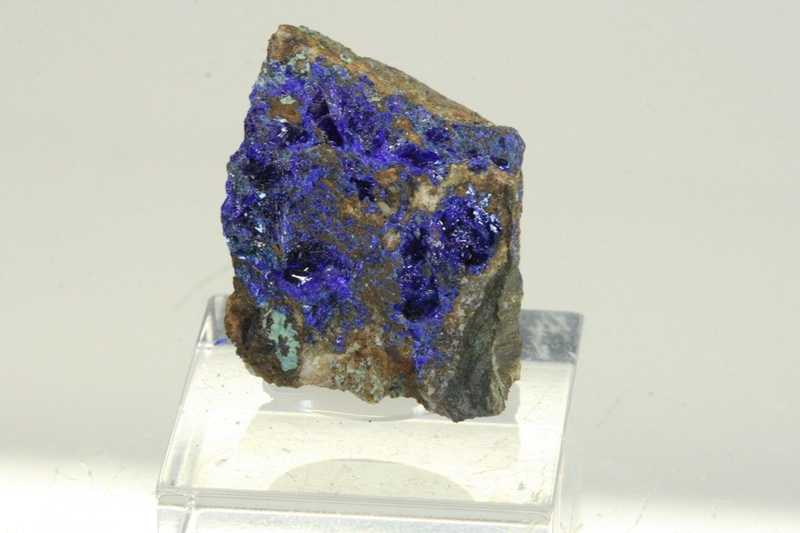 Glossy crystals of azure blue linarite. Several small cavities with linarite crystals several millimeters large.