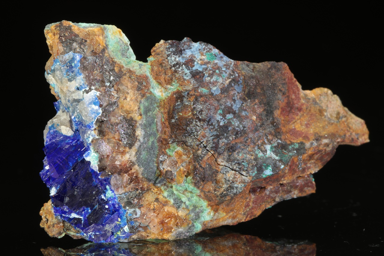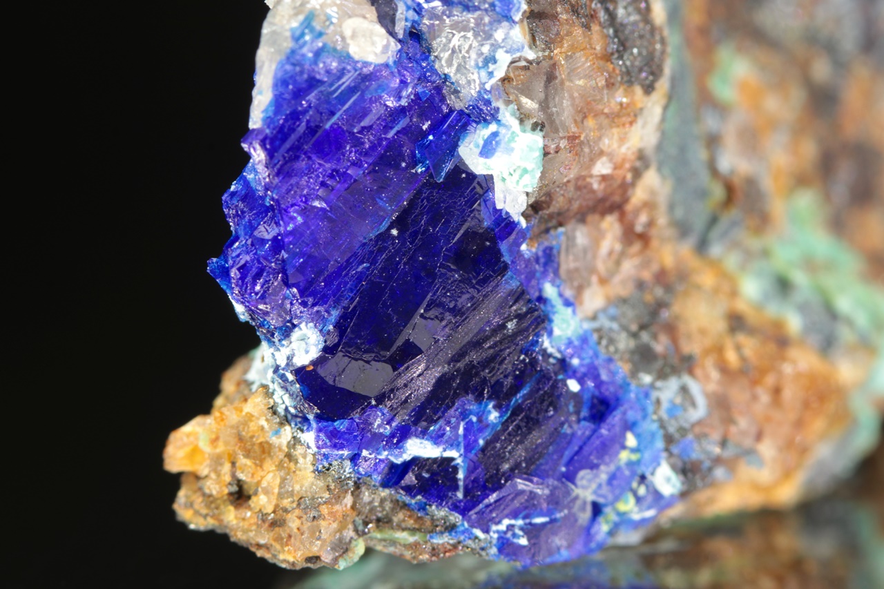 Crystals of rare intensely blue Linarite. The area covered with crystals measures 15 mm × 8 mm.