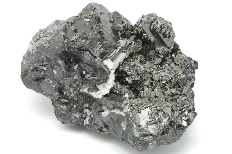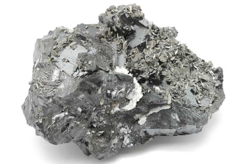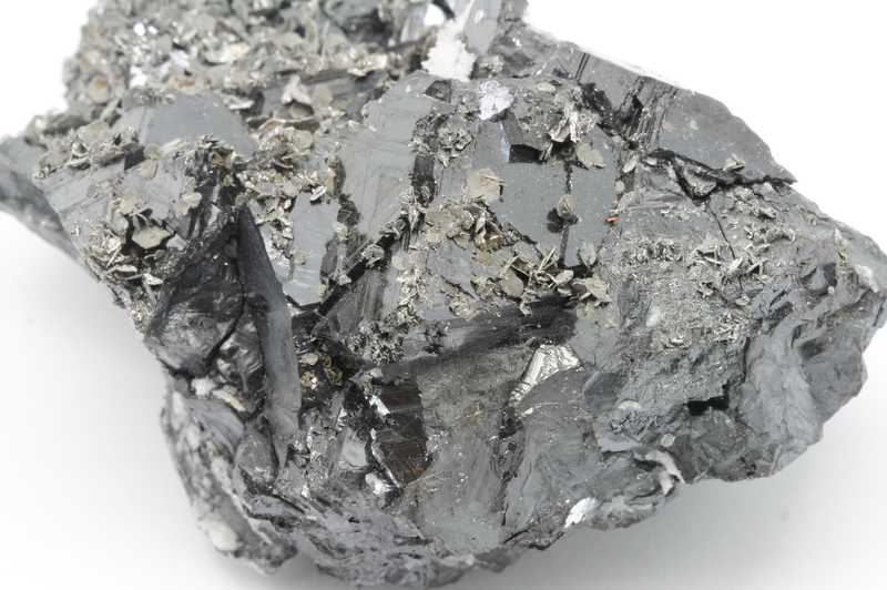 Sample of Löllingite from San Bernardino, Mexico. Sample of arsenide Löllingite in the form of small flaky crystals grown on crystals of sphalerite up to 3 cm in size.