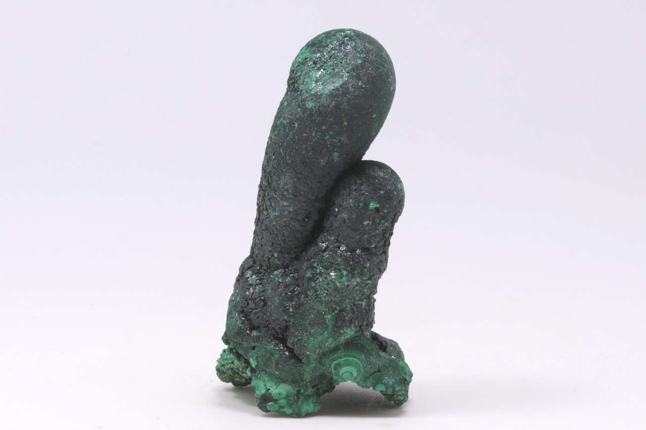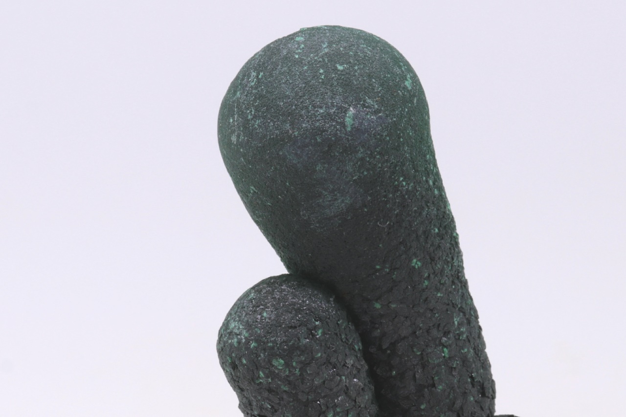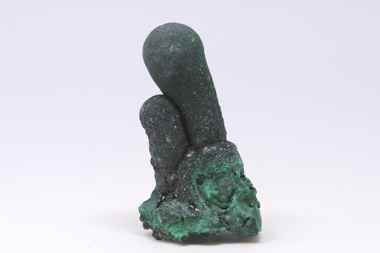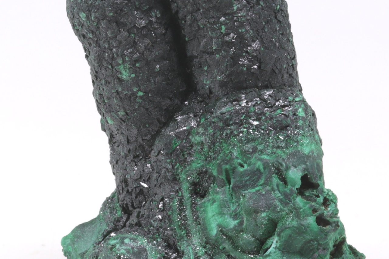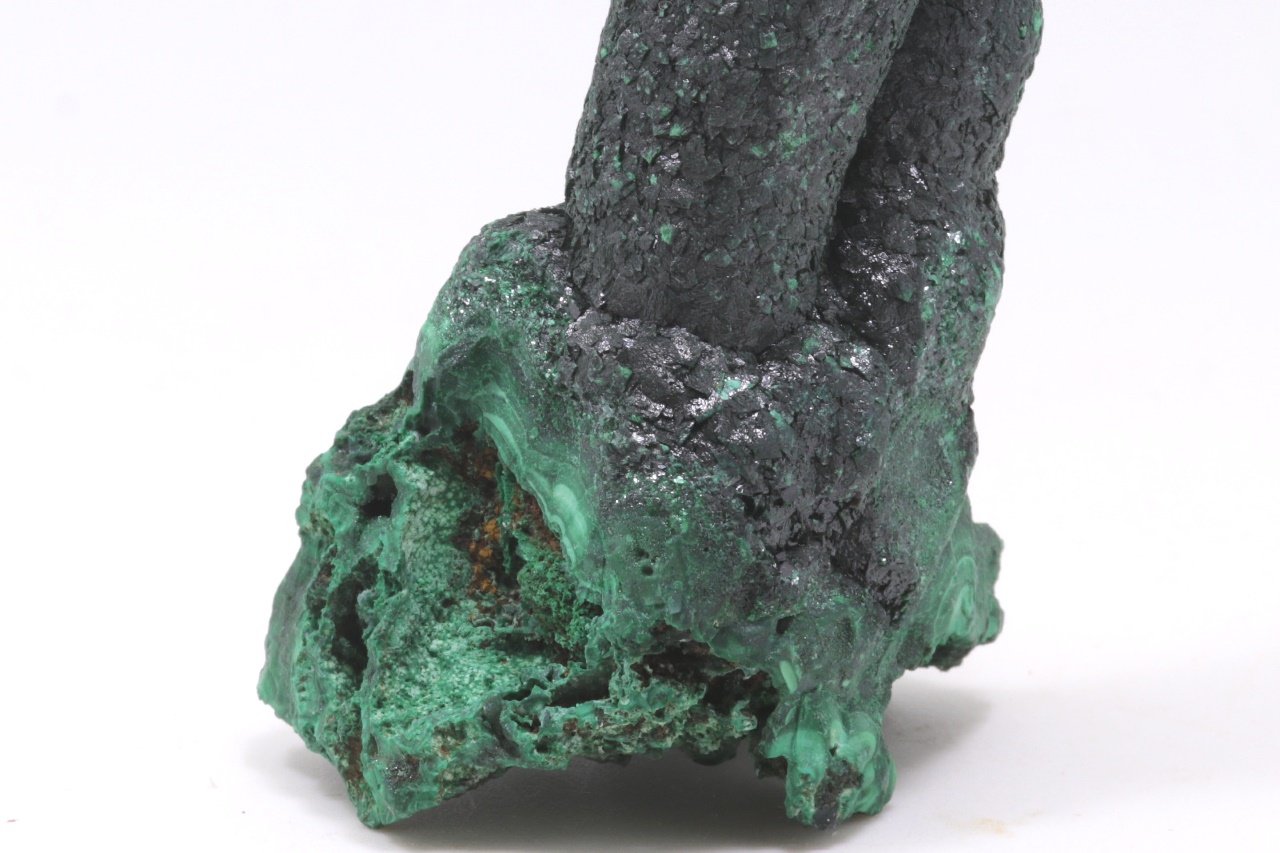 Aesthetic samples of two stalactites of dark green Malachite with a crystallized surface.
