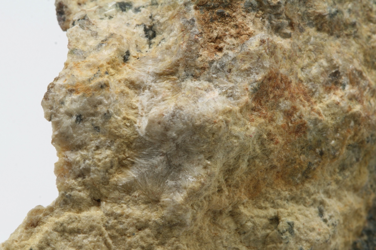 Crystals and radial aggregates of beige-white messelite grown into a cavity about 6 mm in size. A rare phosphate of calcium and iron from the only Czech locality.