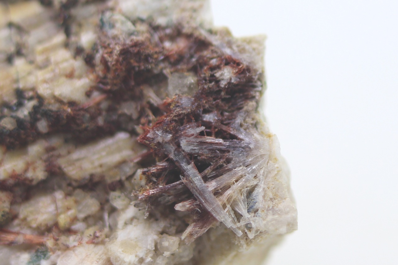 Clusters of light, up to 7 mm large crystals of beryllium silicate – milarite.