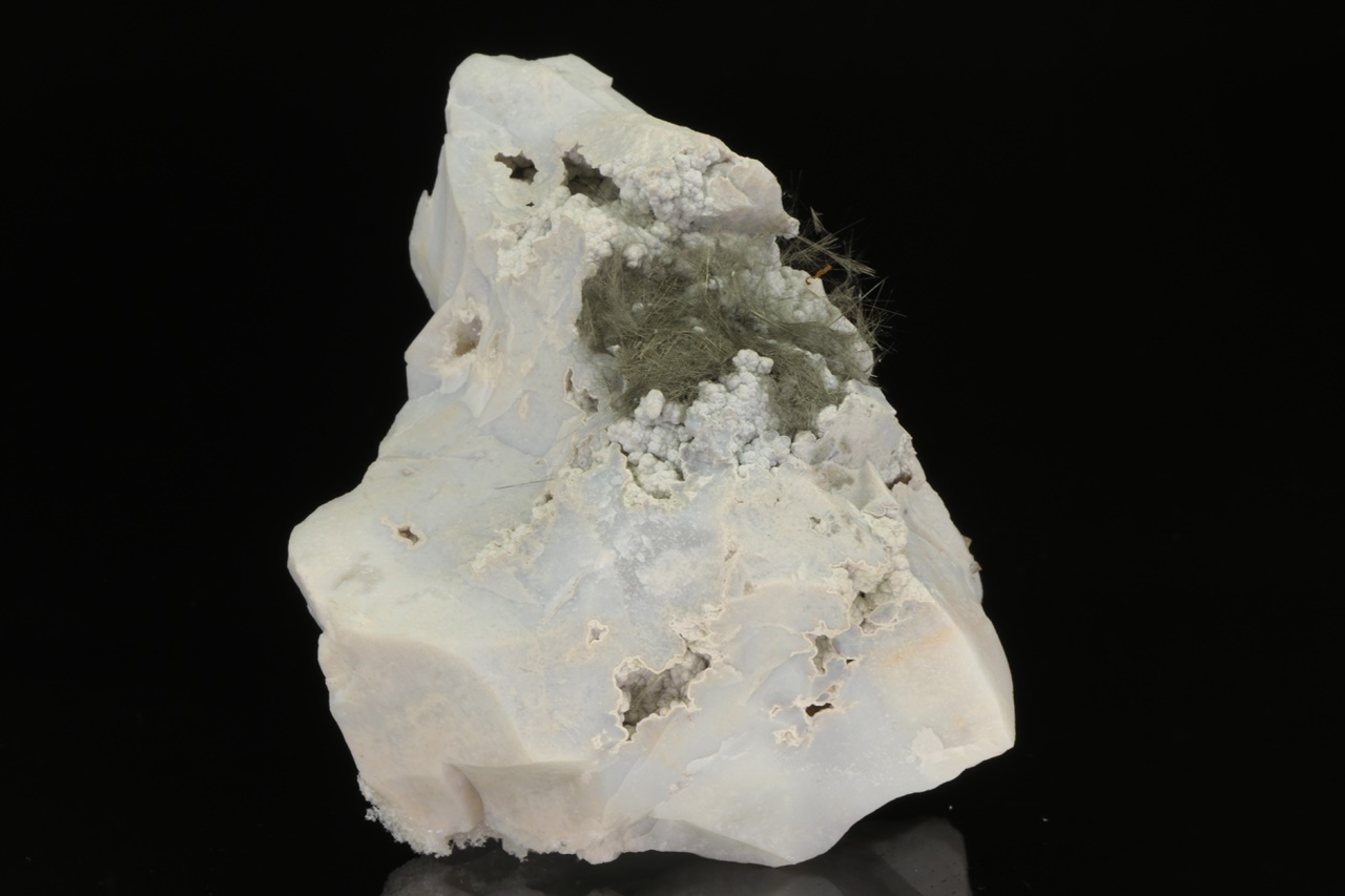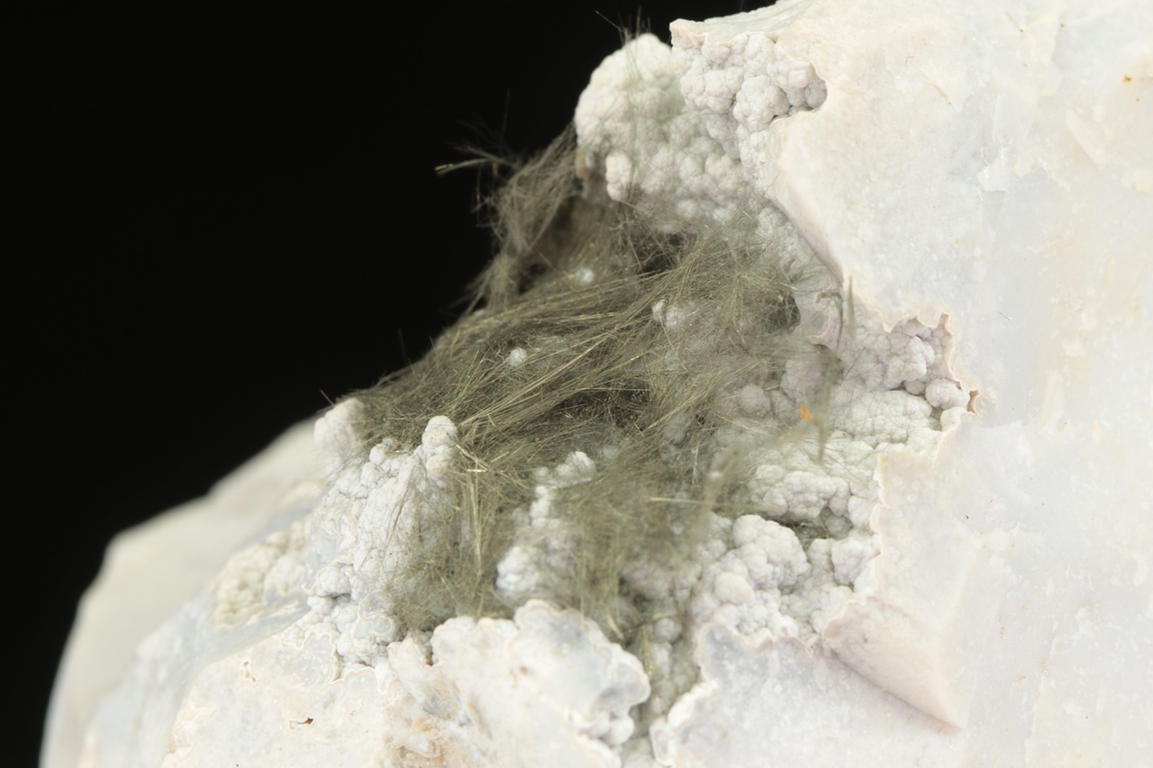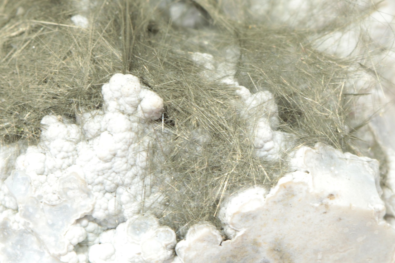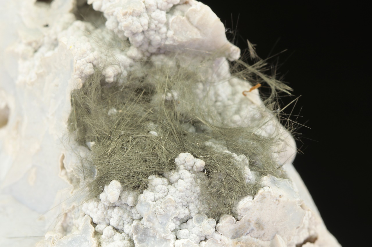 Thin millerite needles up to 1 cm long richly grown into a cavity in siliceous rock.