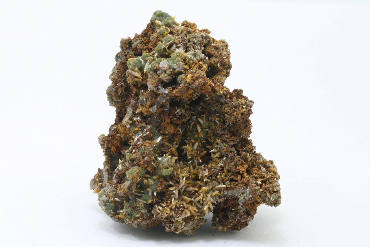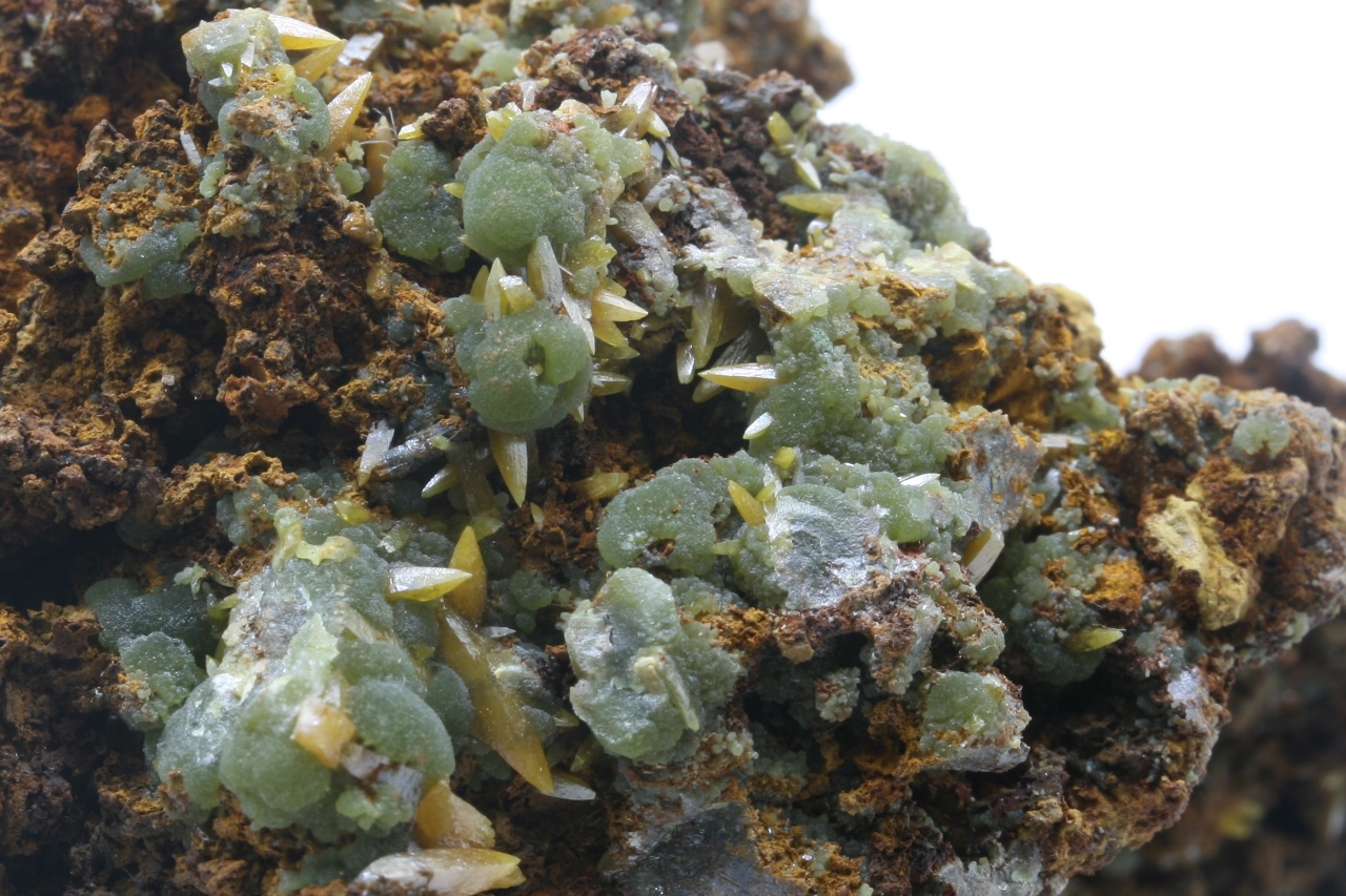 Nodular aggregates of green mimetite with yellow crystals of wulfenite up to 7 mm large.