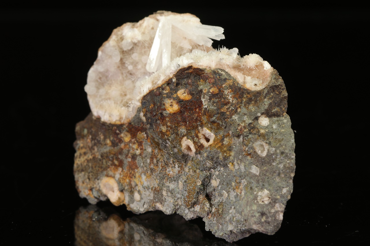 A cavity filled with columnar natrolite up to 1.5 cm in size.