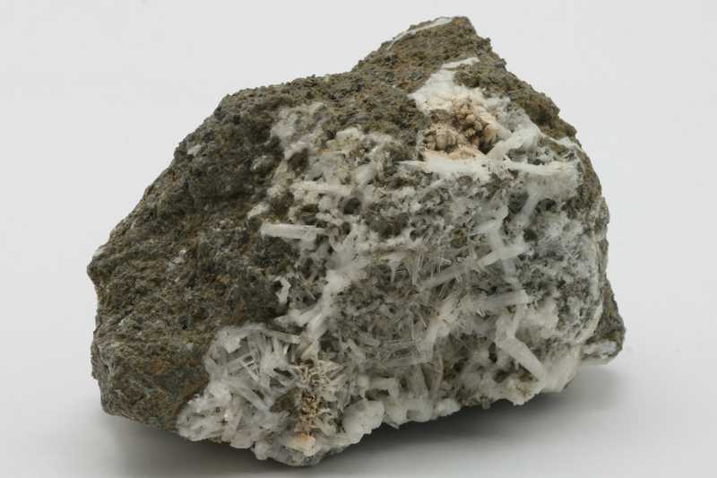 White columnar crystals of natrolite. The largest crystal is 12 mm.【4:1†cz_to_en.json】