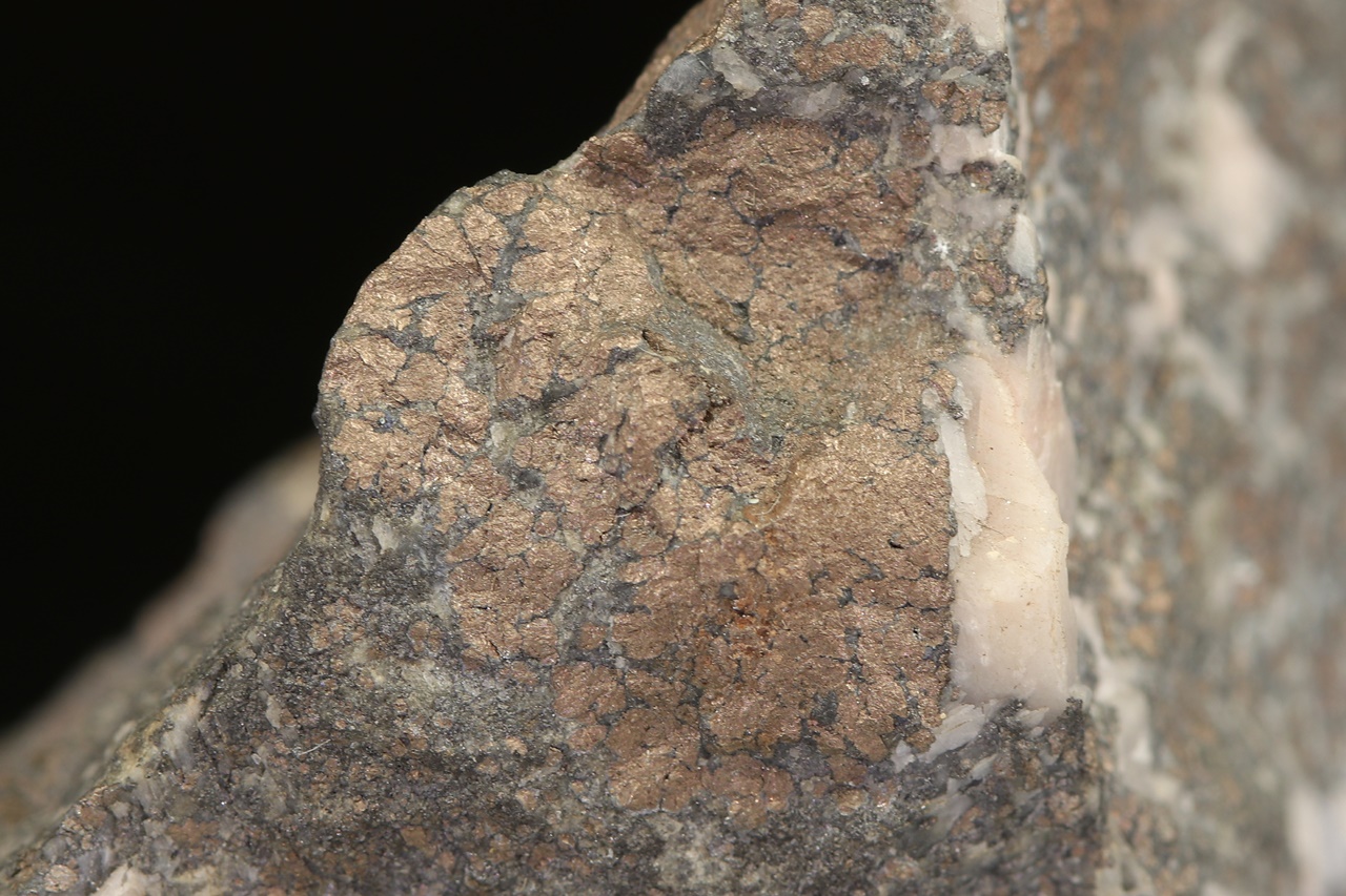 The sample is profusely intergrown with bronze-colored Nickeline, in which large grains of massive Nickeline stand out in the upper part of the sample.