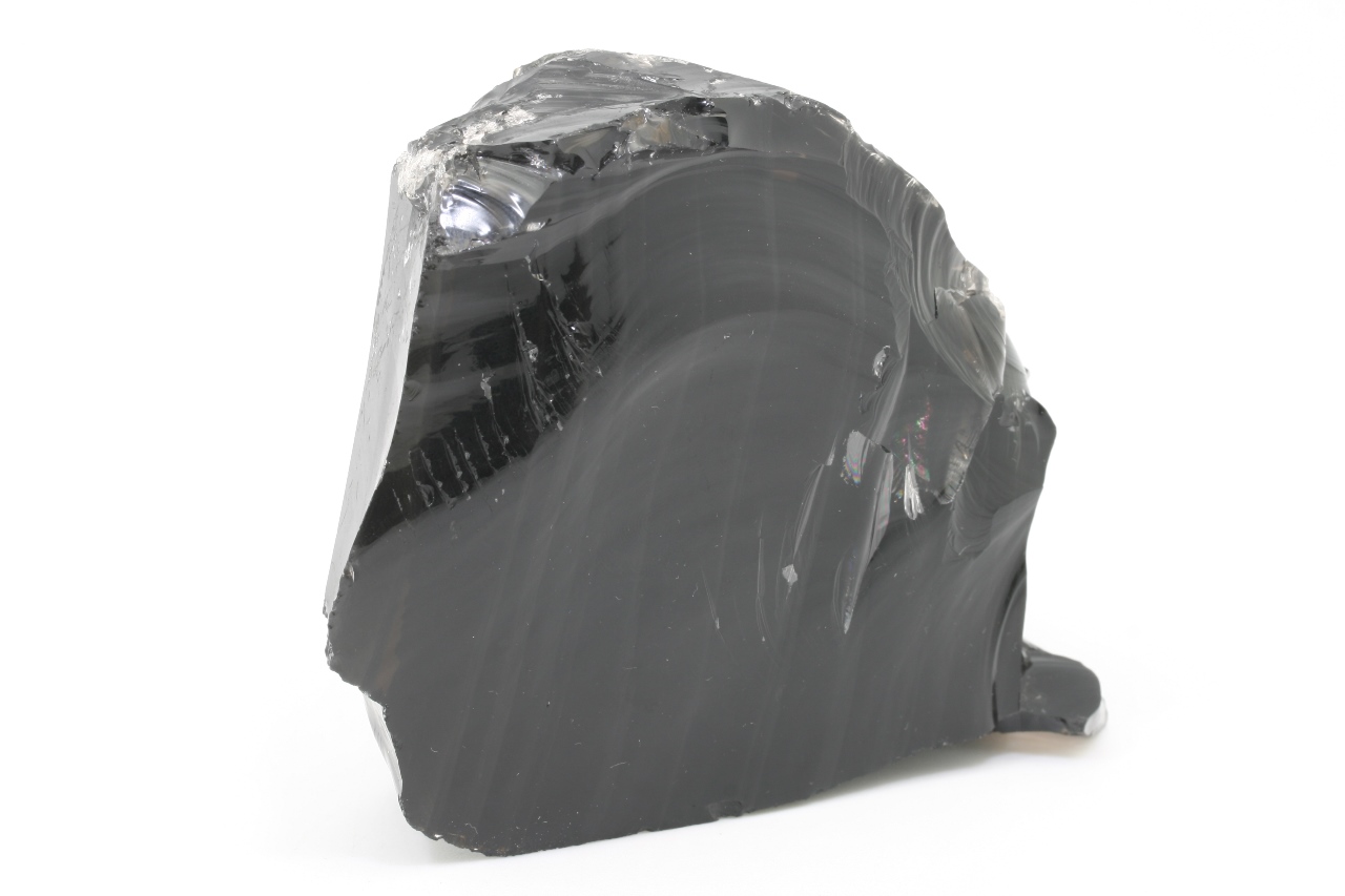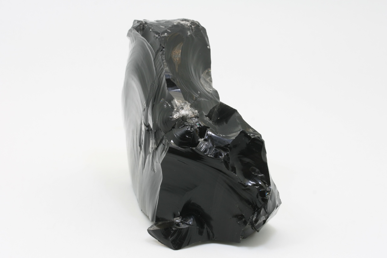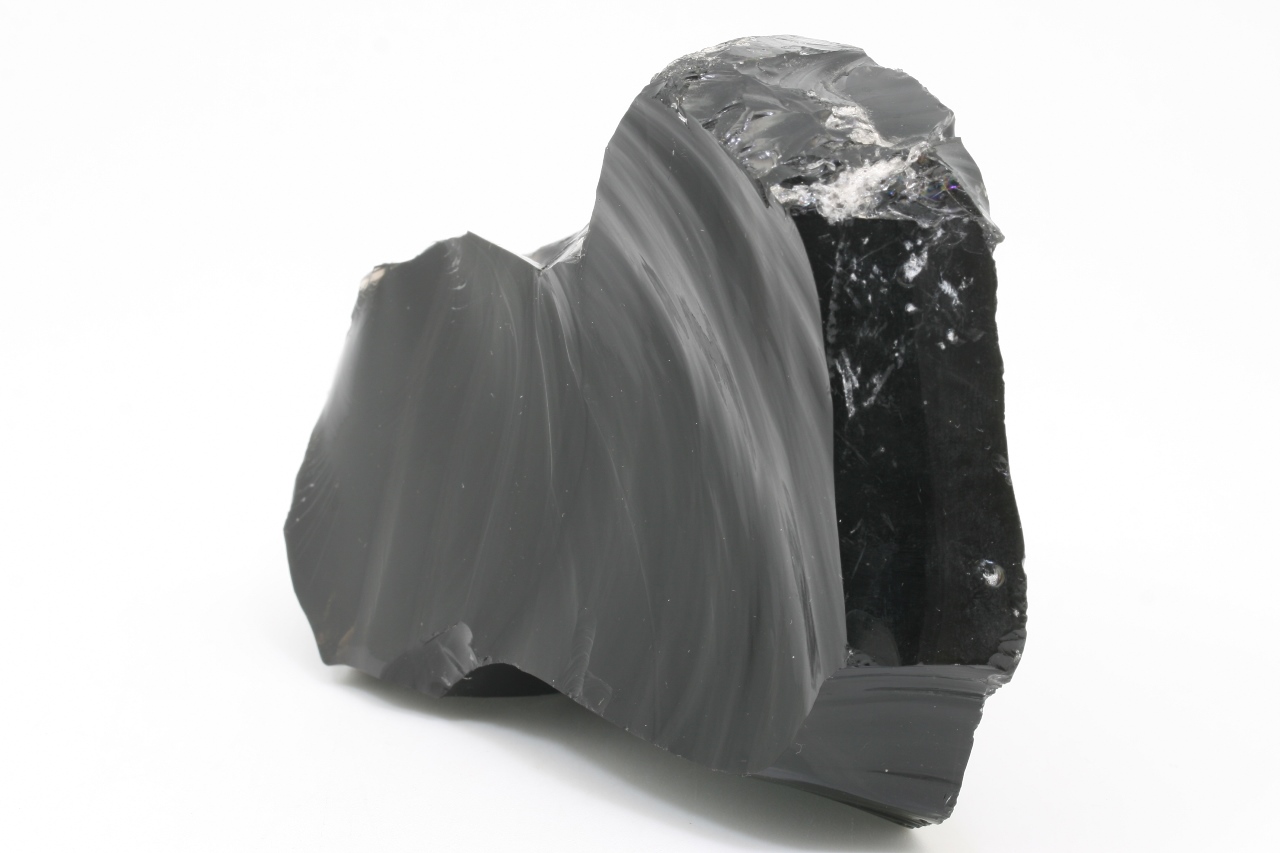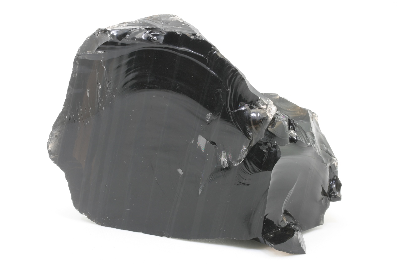 A sample of beautiful, completely pure, perfectly transparent obsidian with a layered structure translucent in purple-brown.