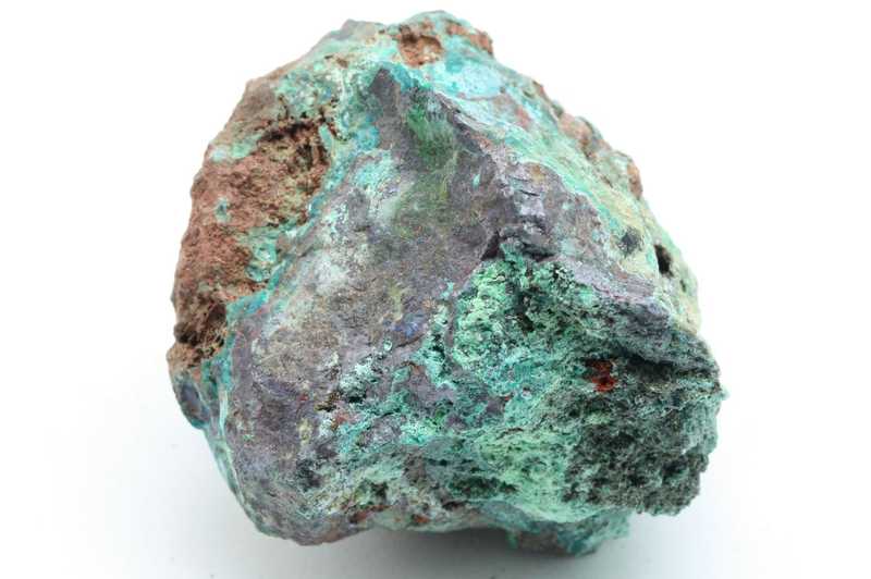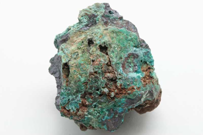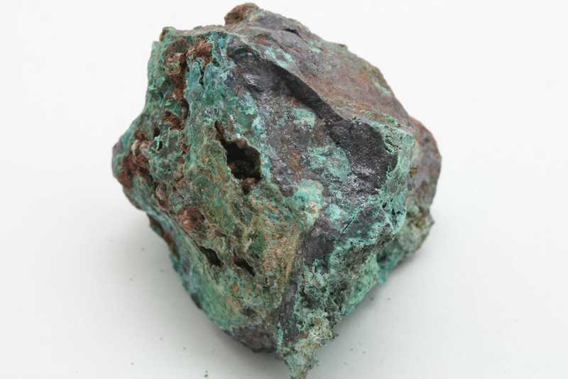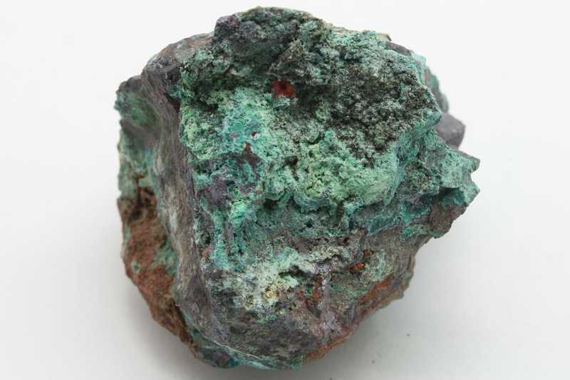 An interesting specimen of cuprite with olivenite from Běloves near Náchod. A nice specimen of a small “nugget” formed by cuprite, in whose cavities there are green copper secondaries, including the not very common bright green aggregates of olivenite.
