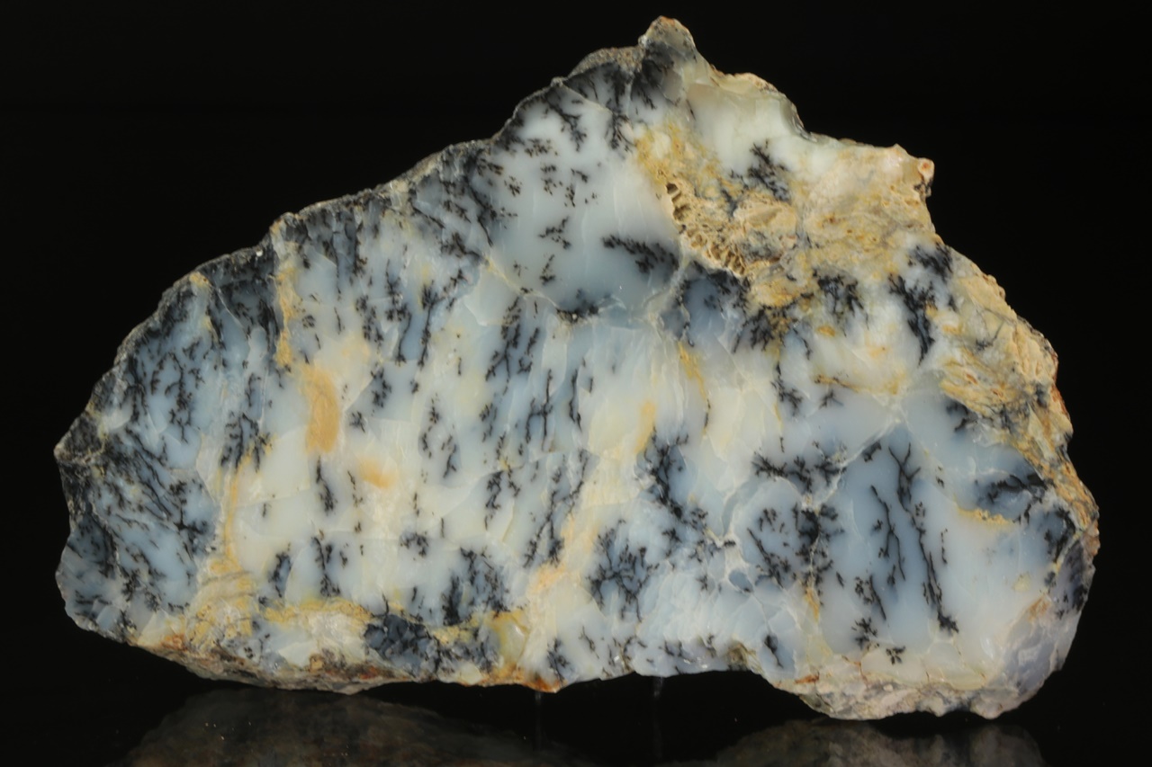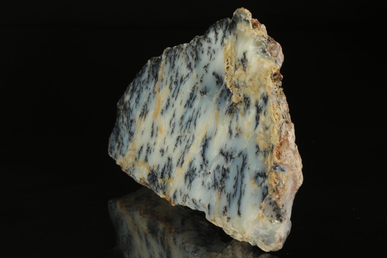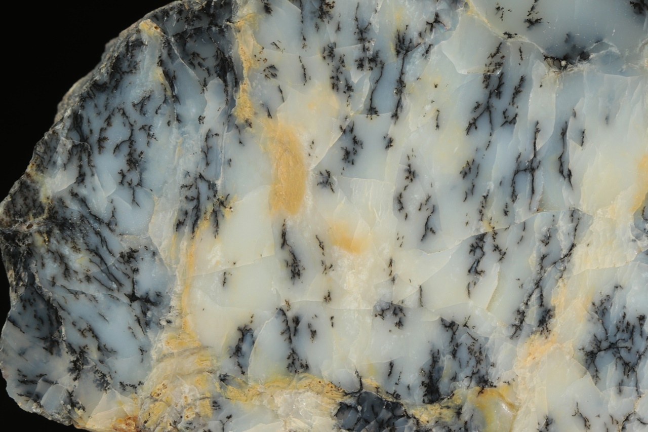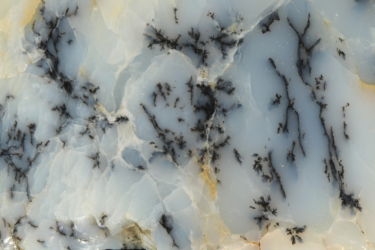 Milky Opal with ingrown black dendrites.