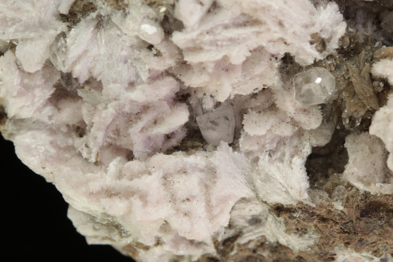 Rich sample of a very rare, slightly pinkish calcium borosilicate – oyelite forming stalky aggregates.