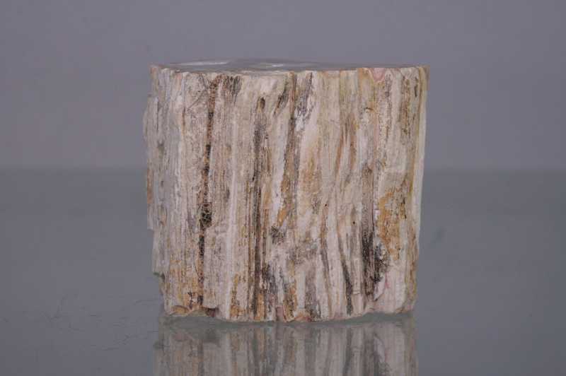 Aesthetic specimen of petrified wood of whitish to grayish colors from the well-known island located off the southeastern coast of Africa. A nice specimen of well-preserved petrified stem from Madagascar; the wood is polished at the cut site.