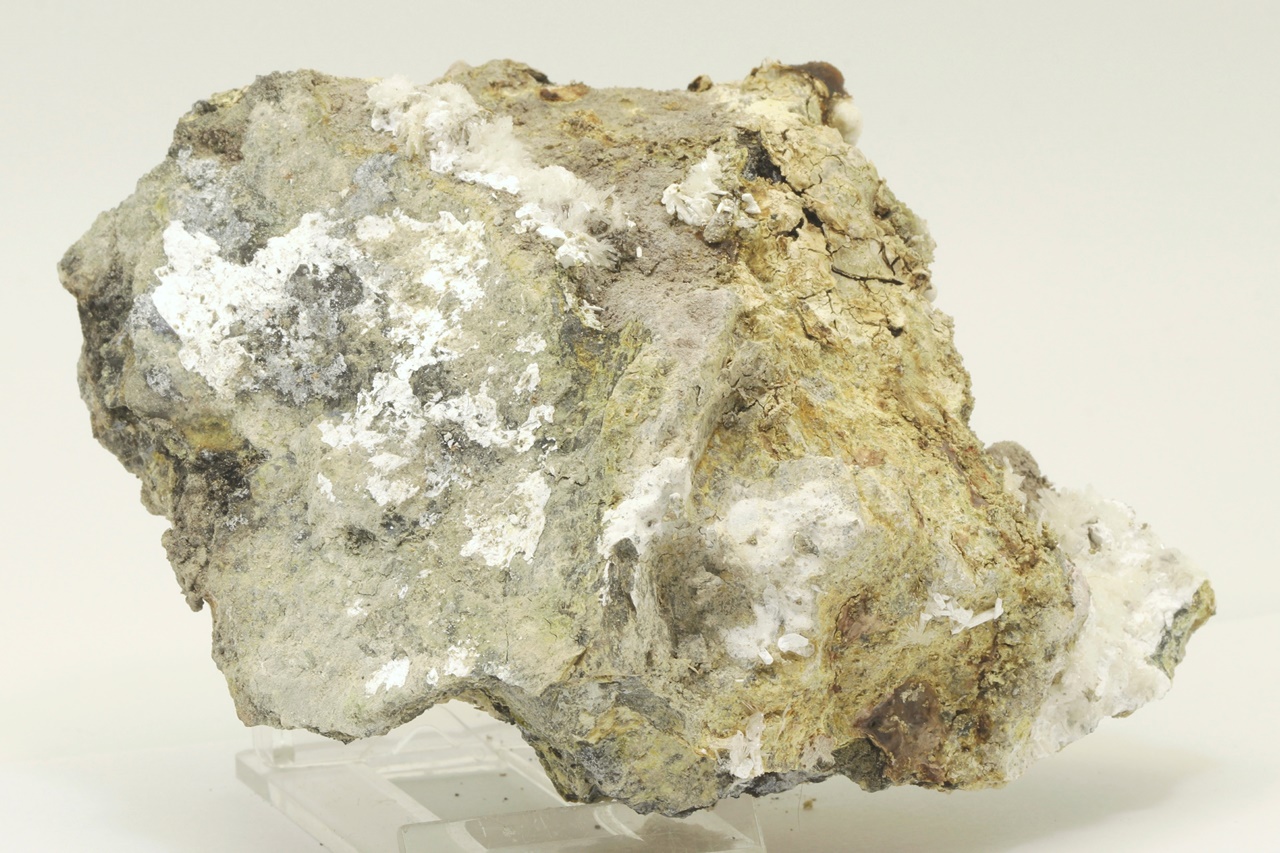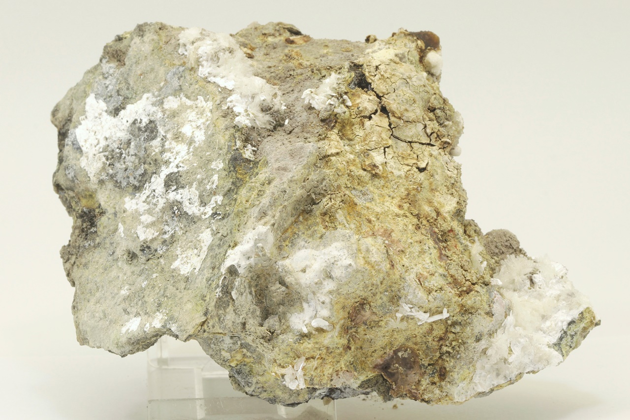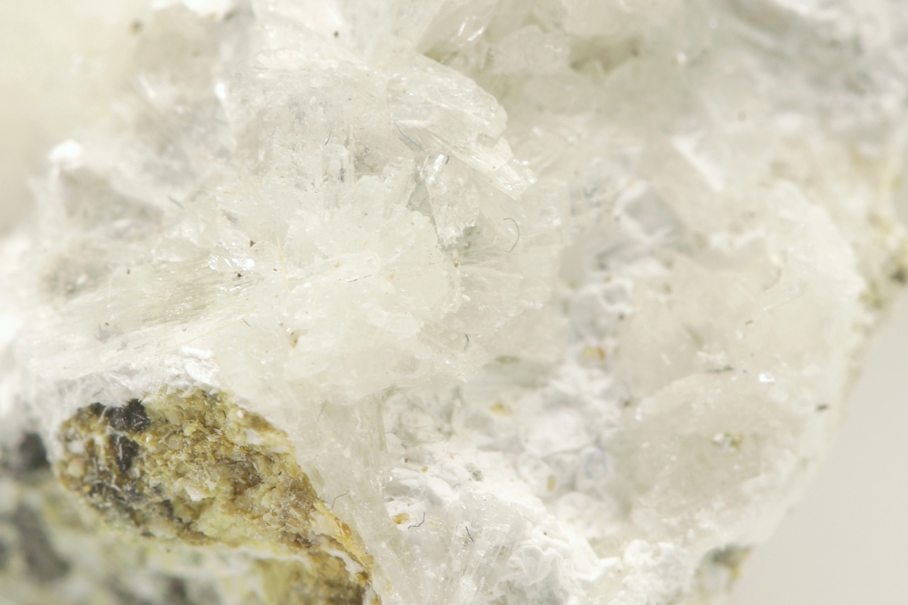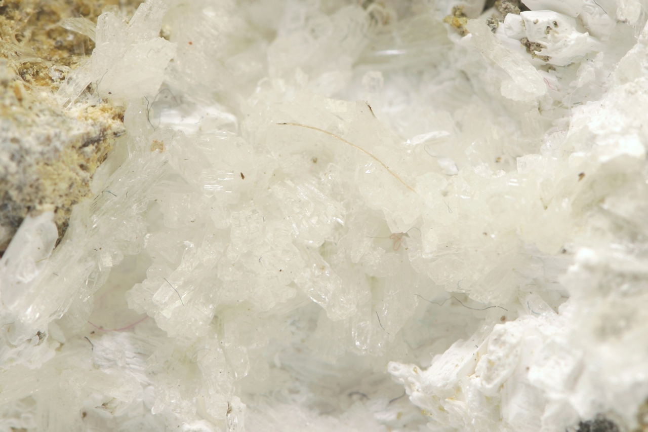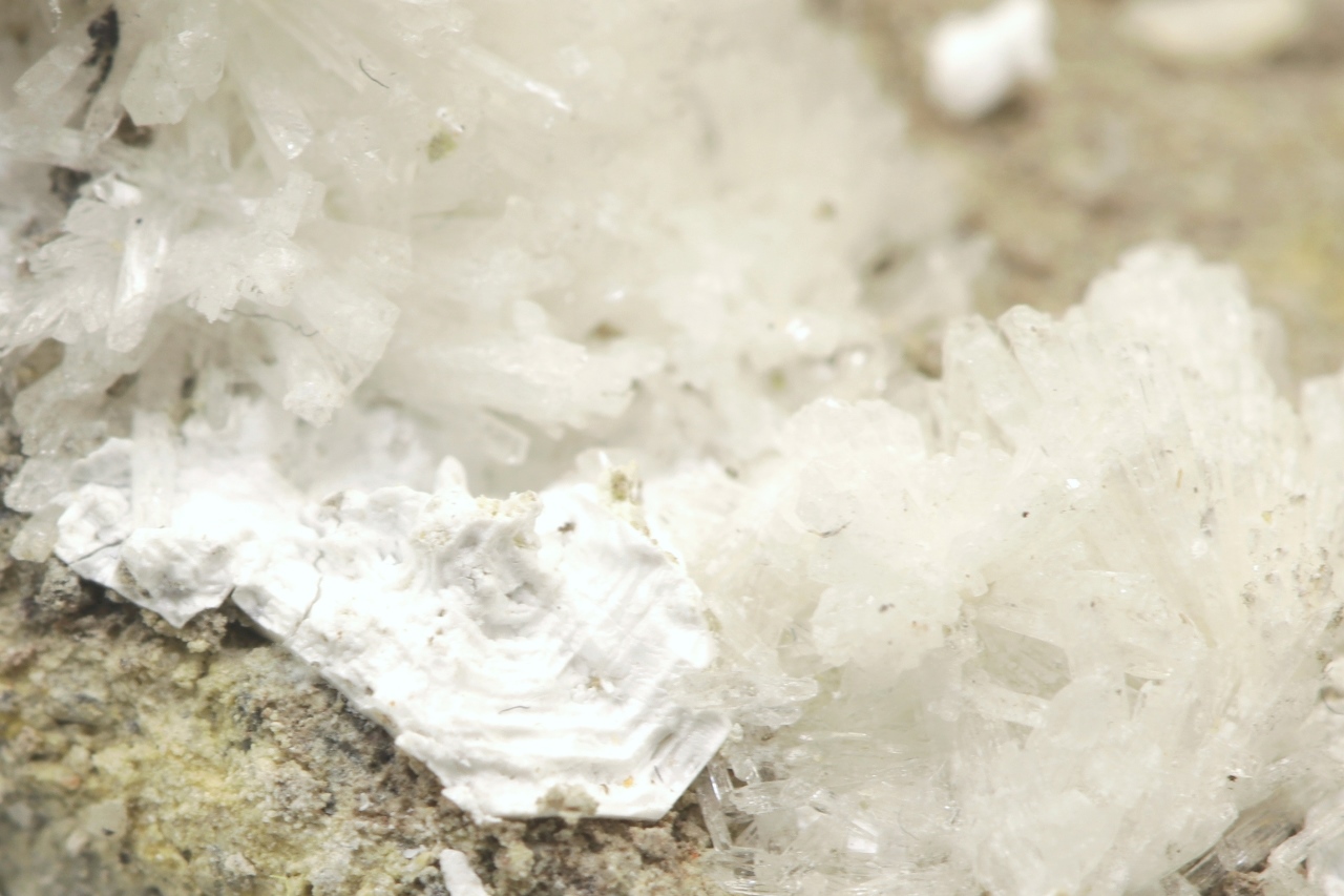 Rich sample of columnar, chalk-white brassite crystals with shrubs of white pharmacolite.