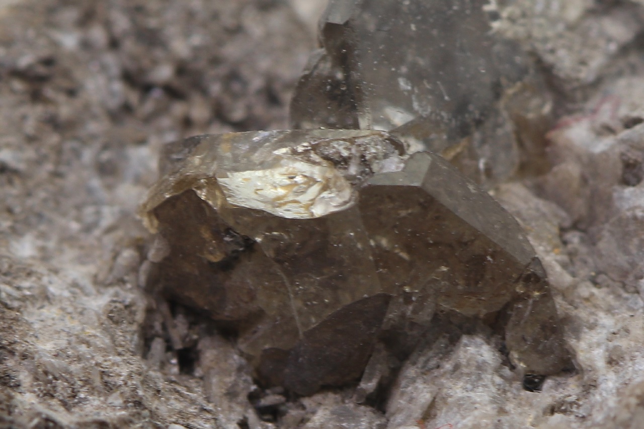 Transparent, very shiny phenakite crystals lightly colored brown. The largest crystal is 12 mm in size.