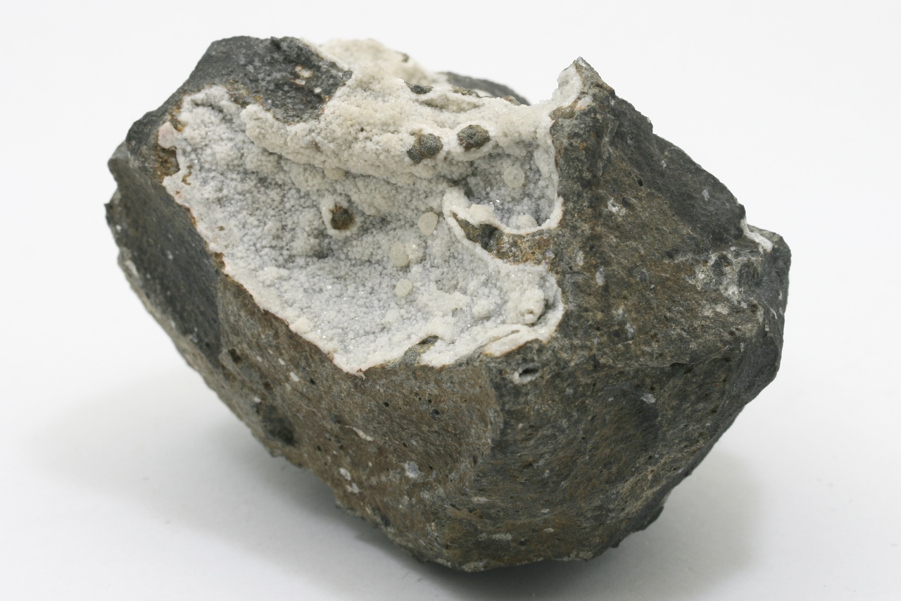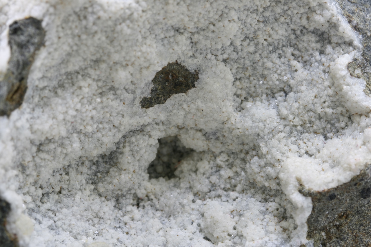 Spherical aggregates of Thomsonite up to 3 mm in size with tiny white Phyllipsite.