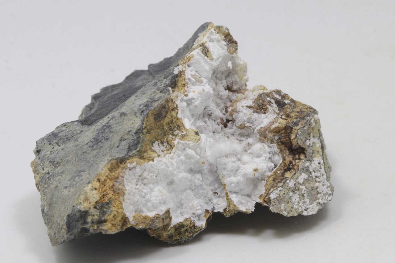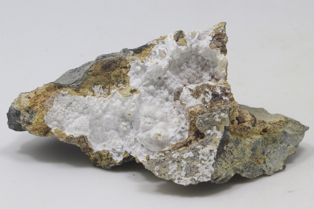 Radial aggregates of pikrofarmakolite up to 4 mm in size, grown in a cavity with brassite.