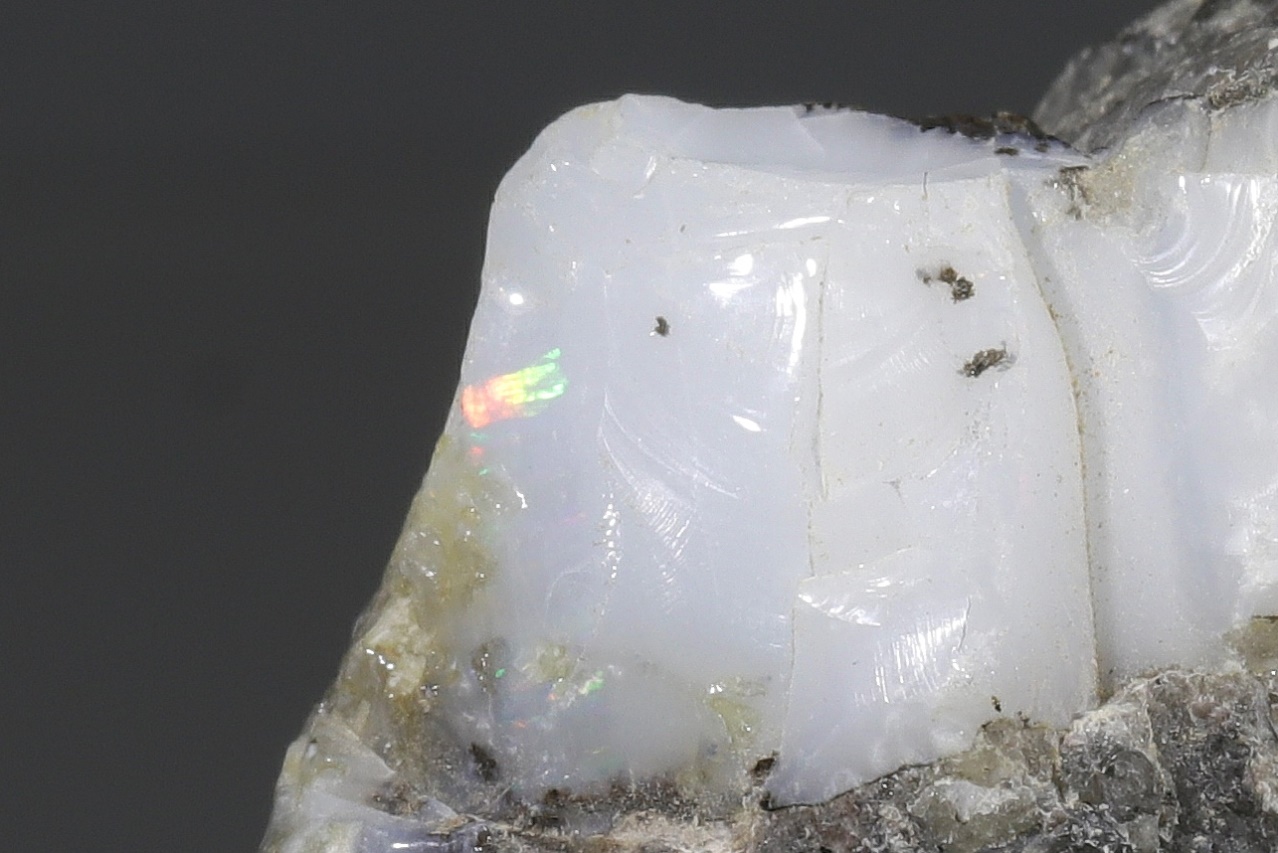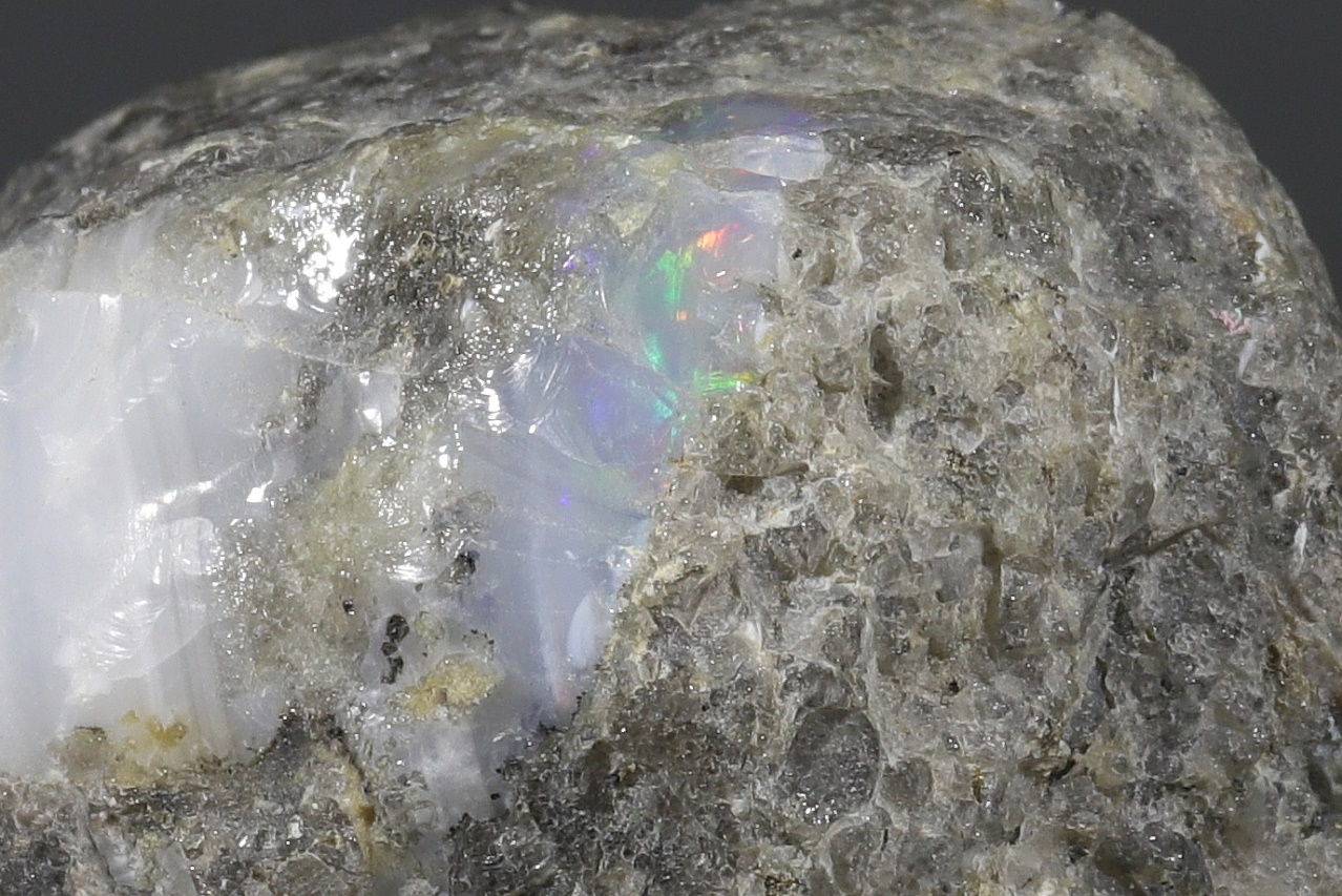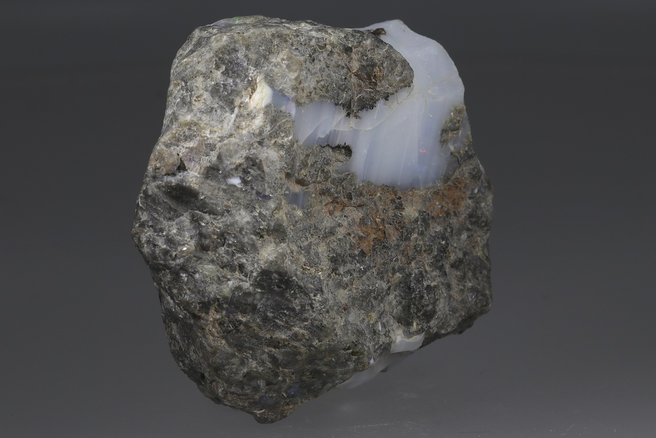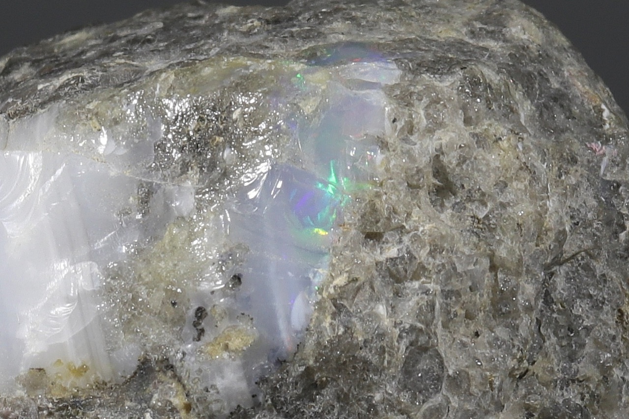 Vein of white opal in the parent rock. Opalescence is most intense in colorless opals .