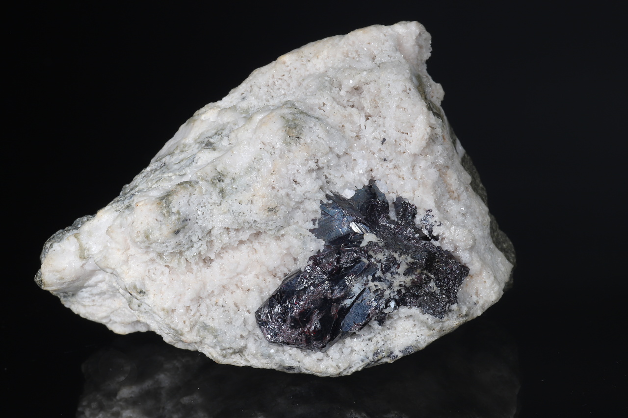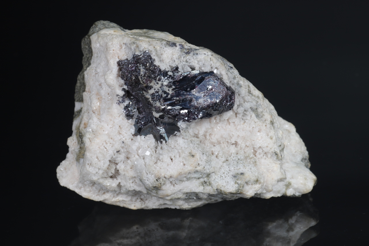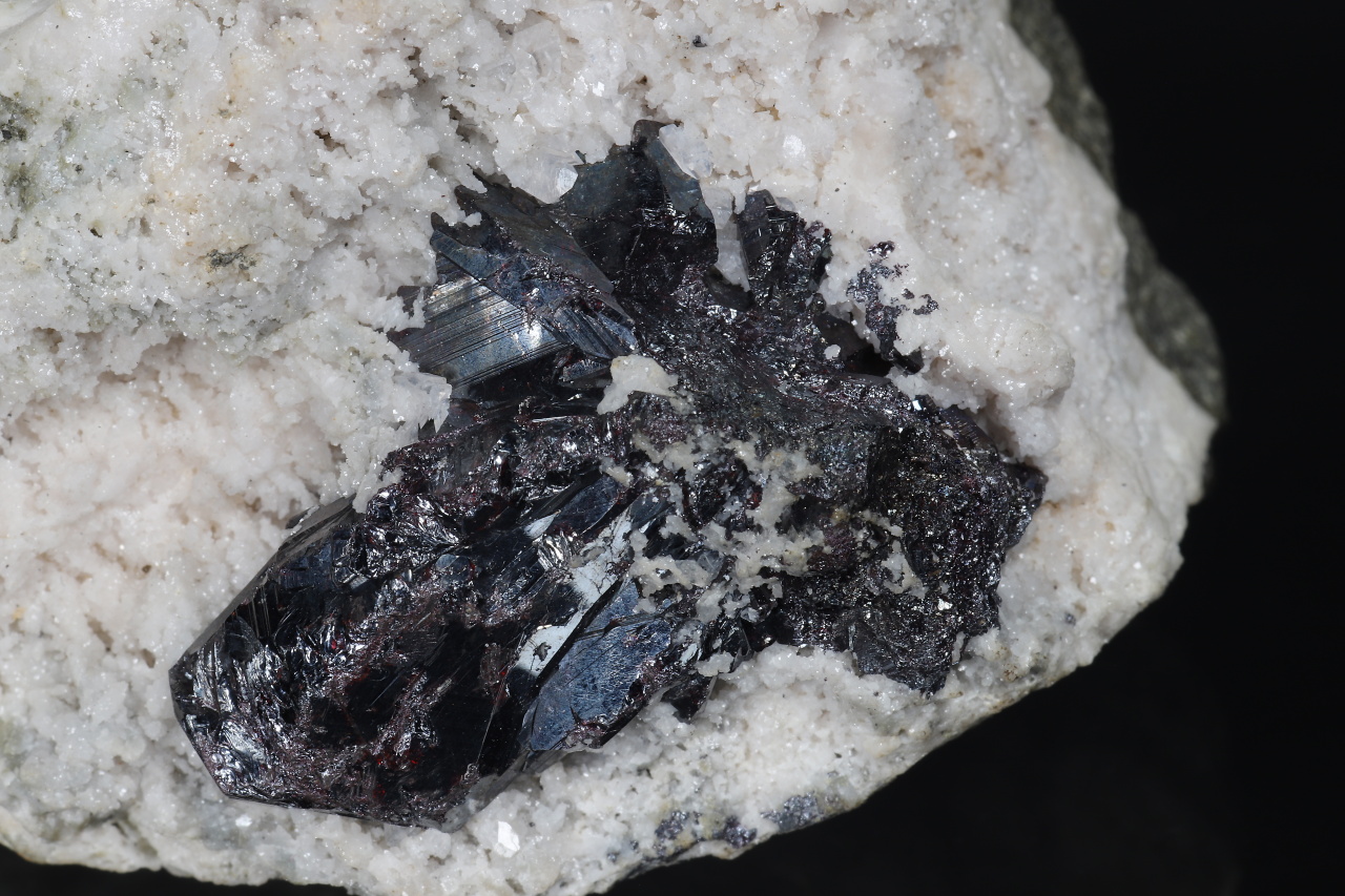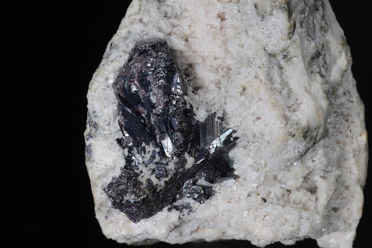 Srostlice vysoce lesklých krystalů pyrargyritu o velikosti 27 mm na krystalovaném karbonátu. Estetická ukázka velkých krystalů Ag minerálů z Mexika. Vzorek je ze zadní strany seříznutý.