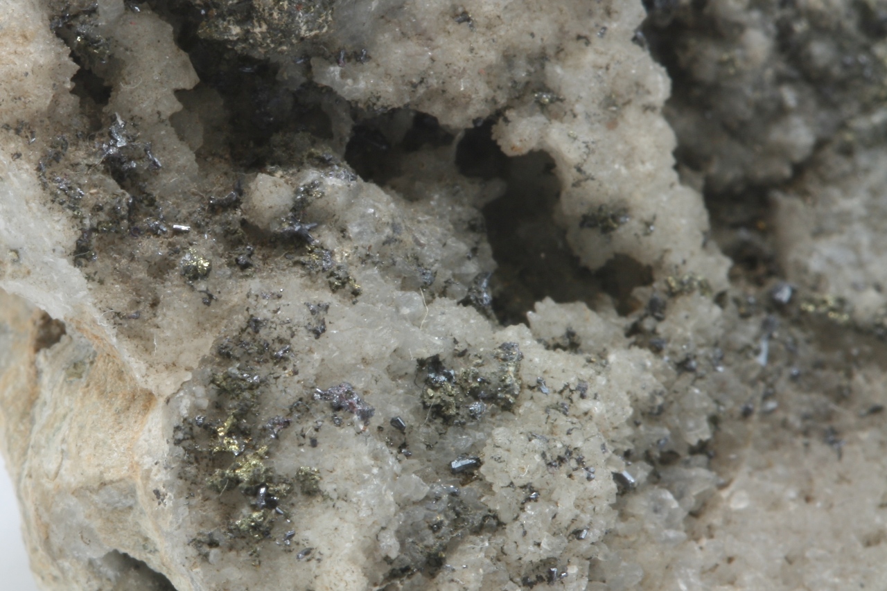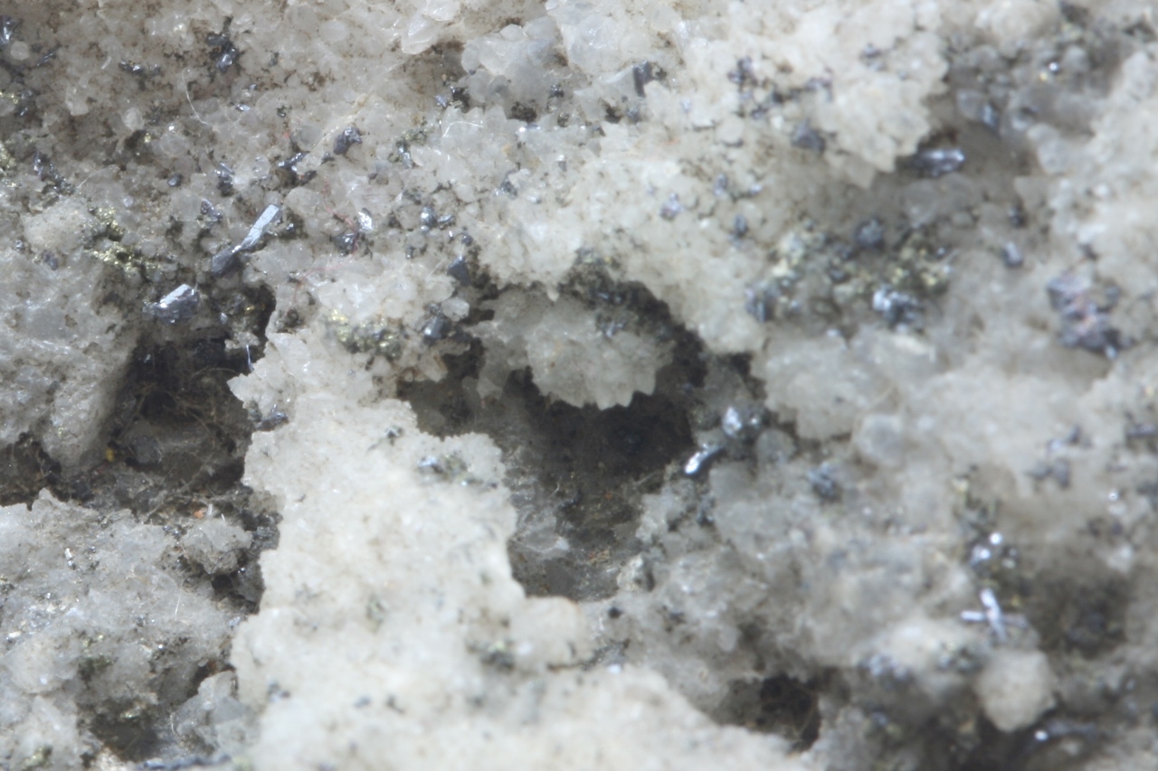 A historical sample of tiny pyrargyrite crystals grown on quartz.