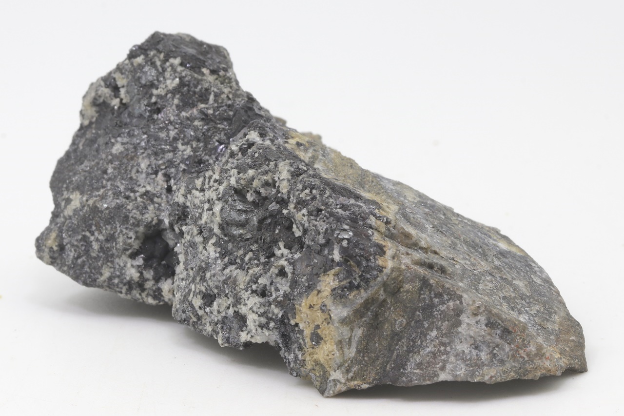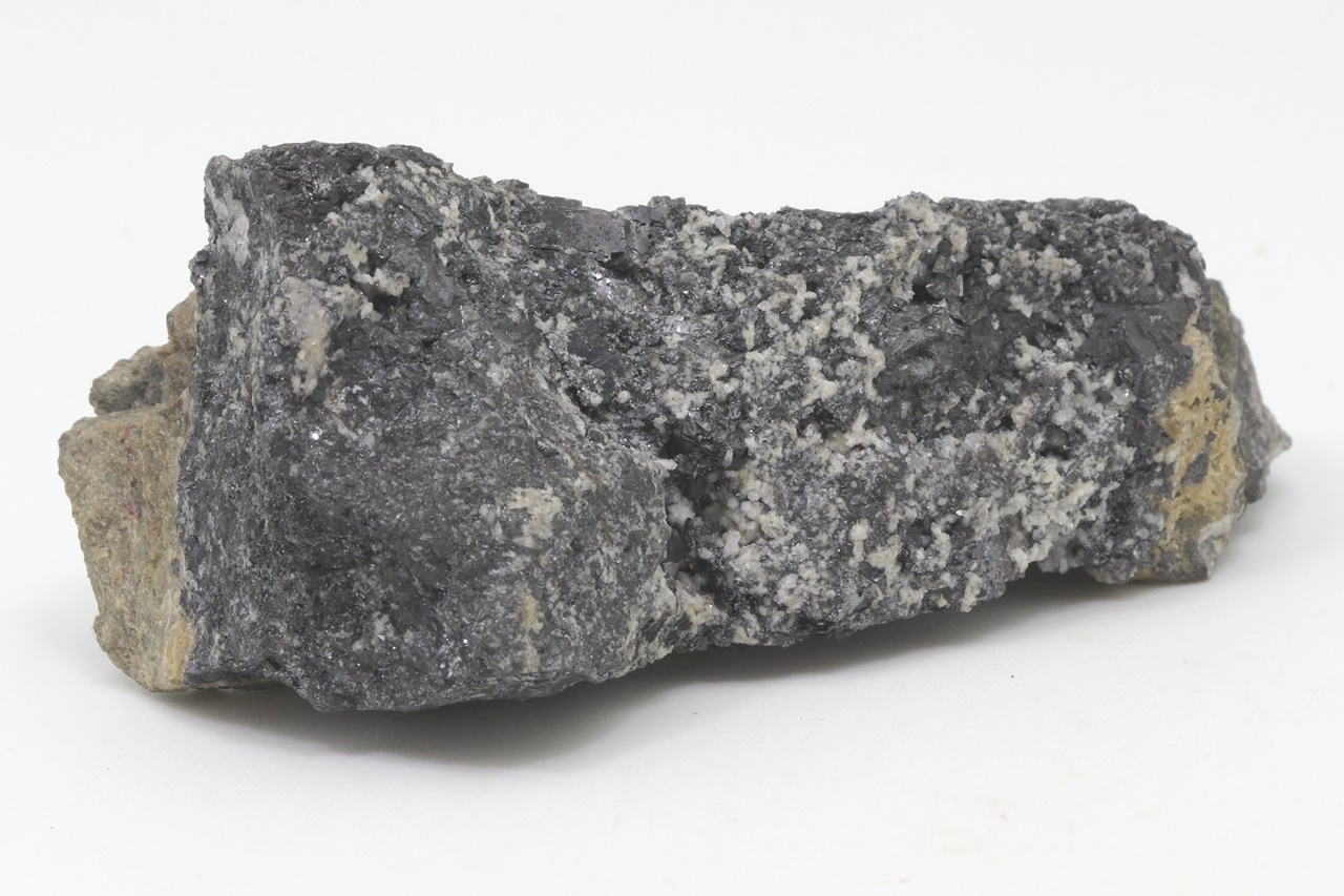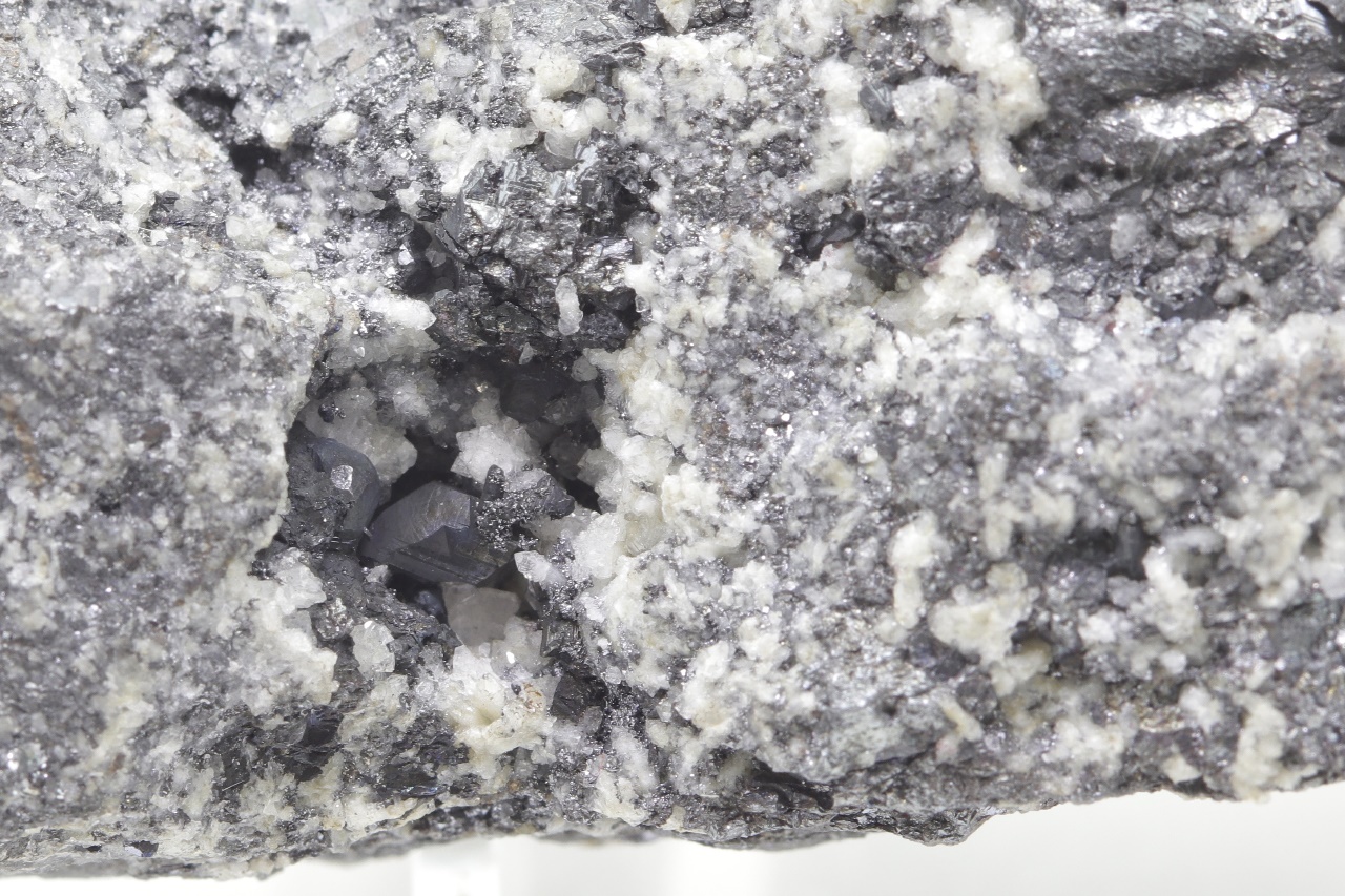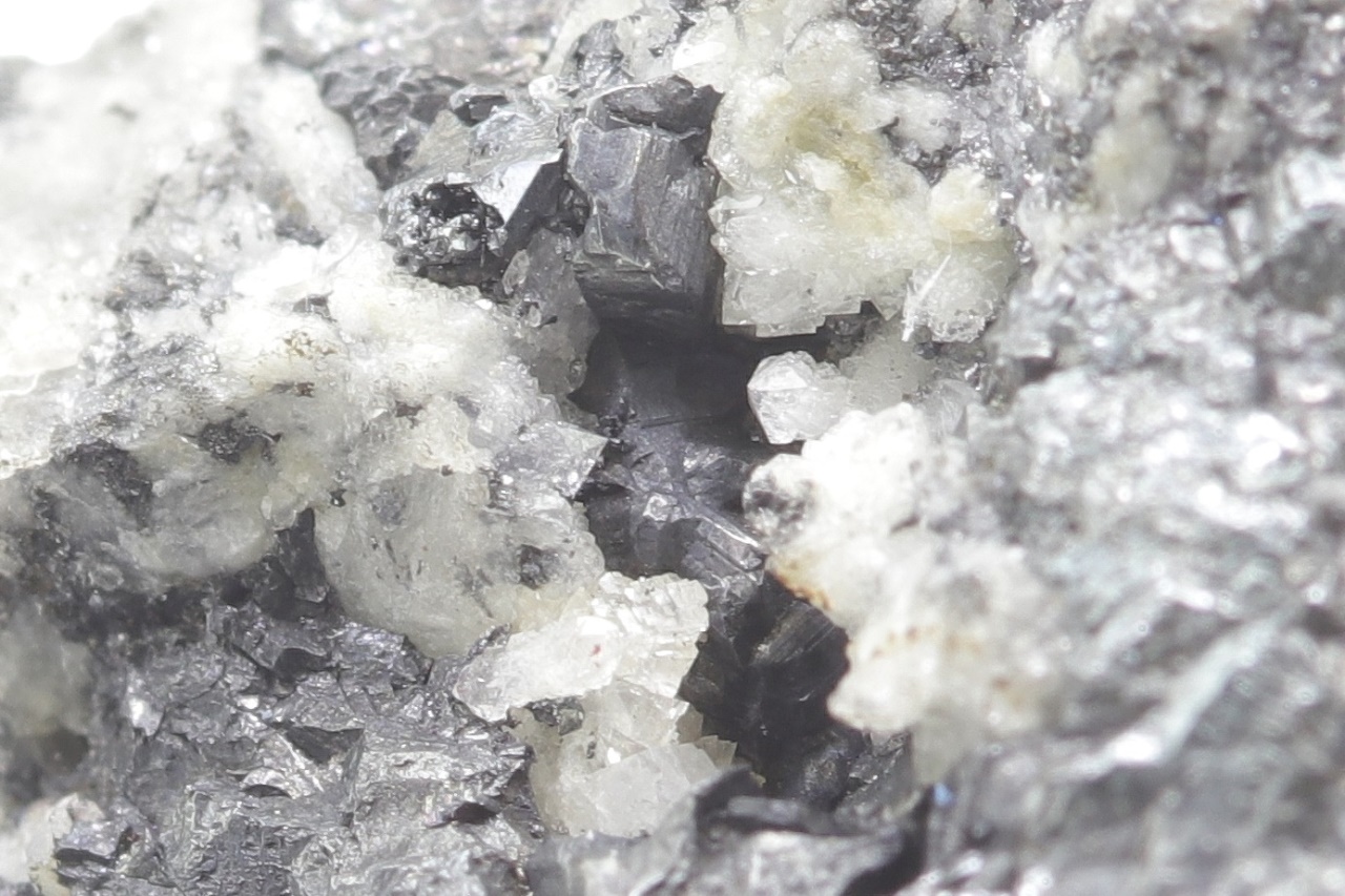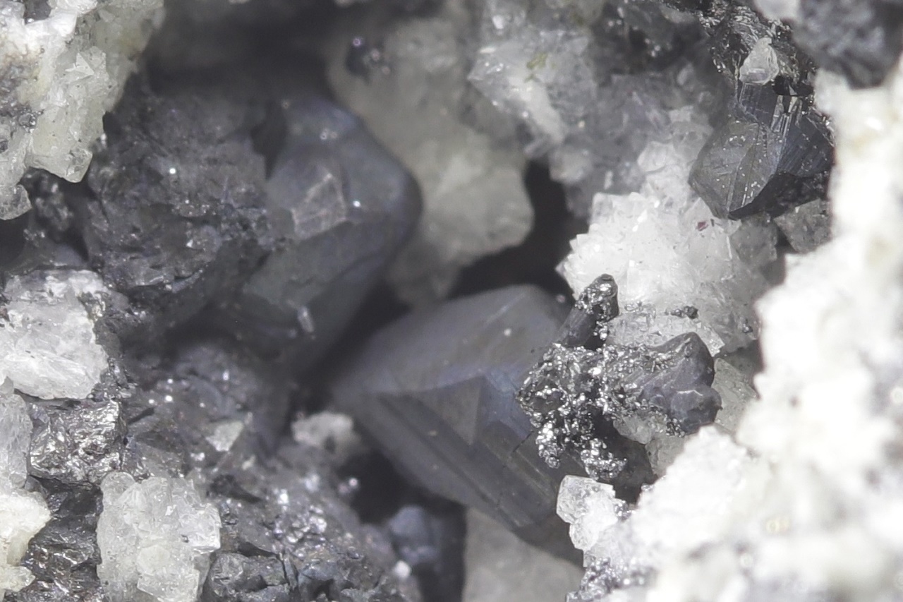 Sample of Příbram vein matter with cavity-grown pyrargyrite (up to 3 mm in size), on which smaller lustrous crystals of stefanite have grown.