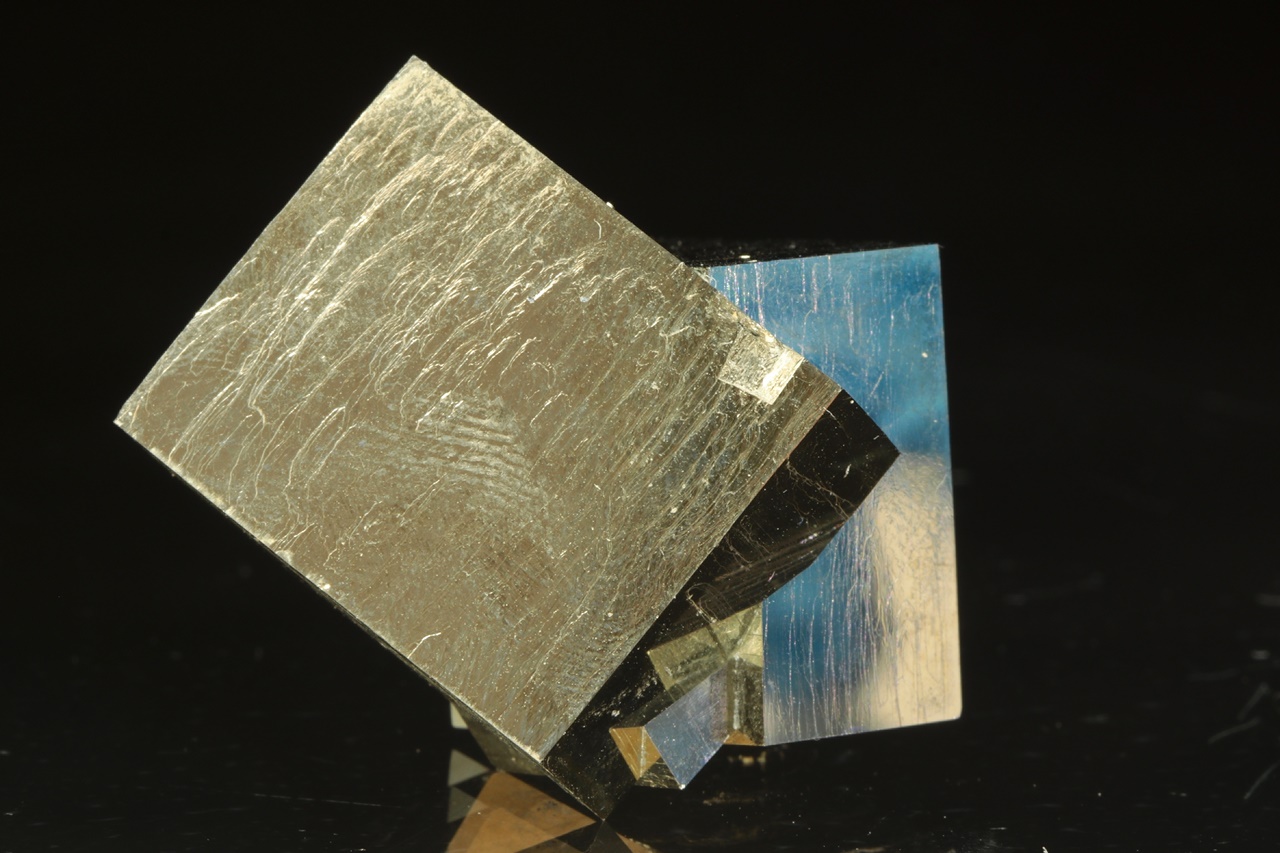 Nádherná ukázka prorostlice dokonale omezených krystalů pyritu. Pyrity jsou srostlé podle (111).