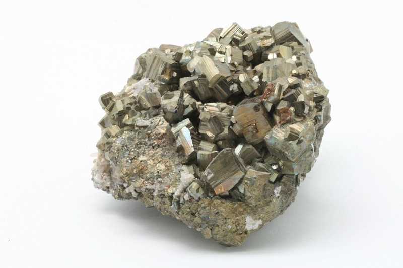 Druse of pyrite crystals from Madan, Bulgaria. Pyrite crystals up to 1 cm in size.