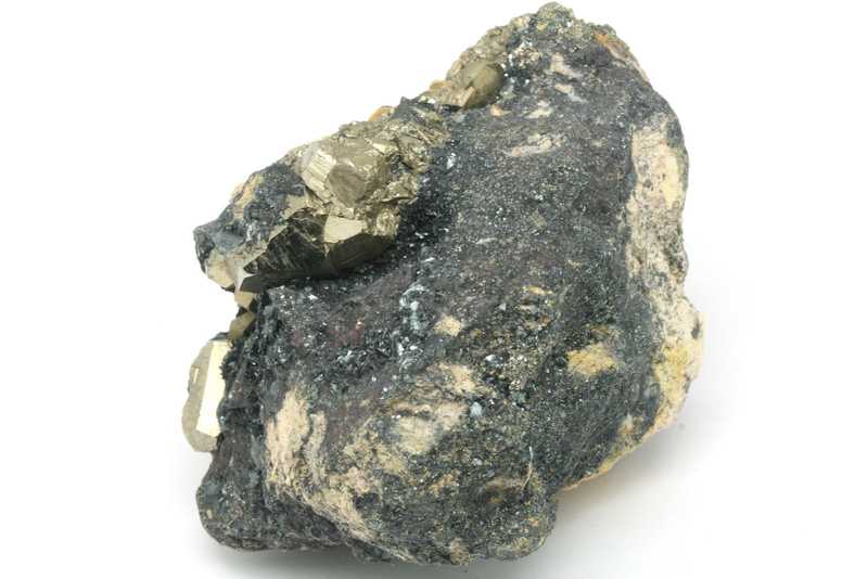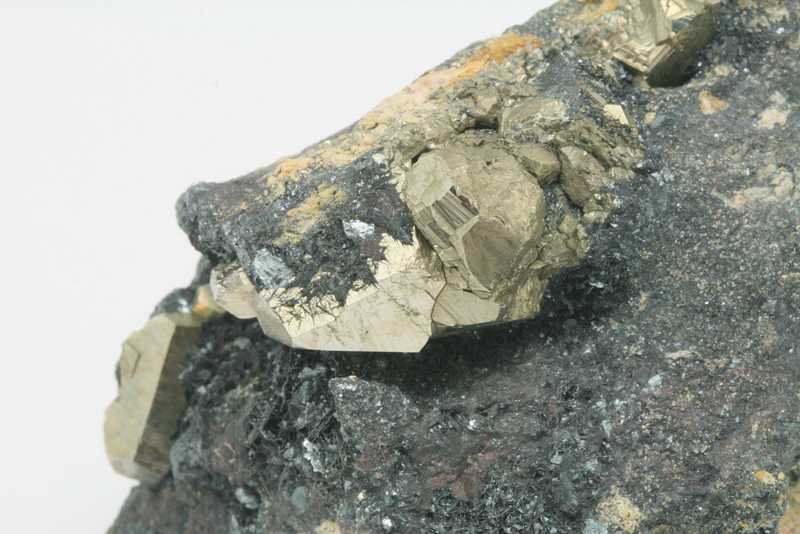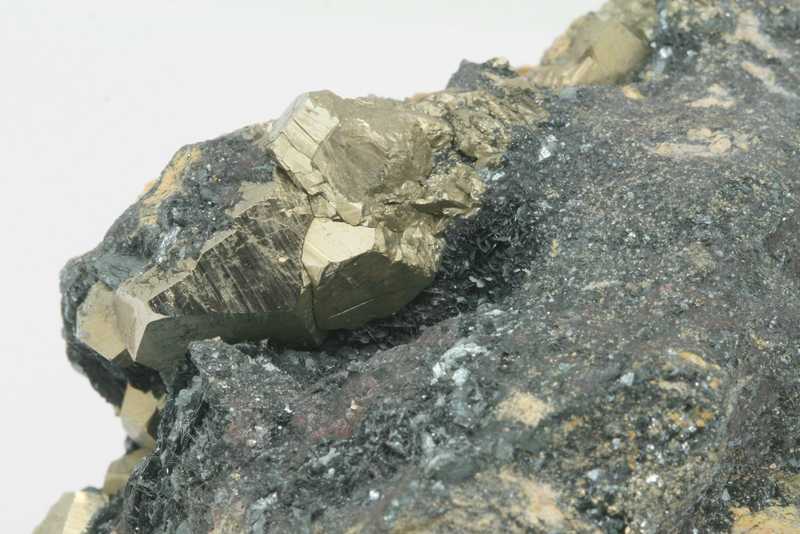 Sample of pyrite and hematite from the classic locality Rio Marina, Elba, Italy. Sample of pyrite crystals up to 2 cm in size grown on hematite.