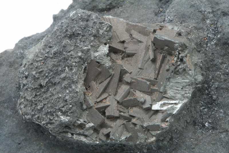 Sample of pyrolusite from the Horní Blatná locality, Czech Republic. Sample of grey-black manganese oxide crystals up to 5 mm in size.