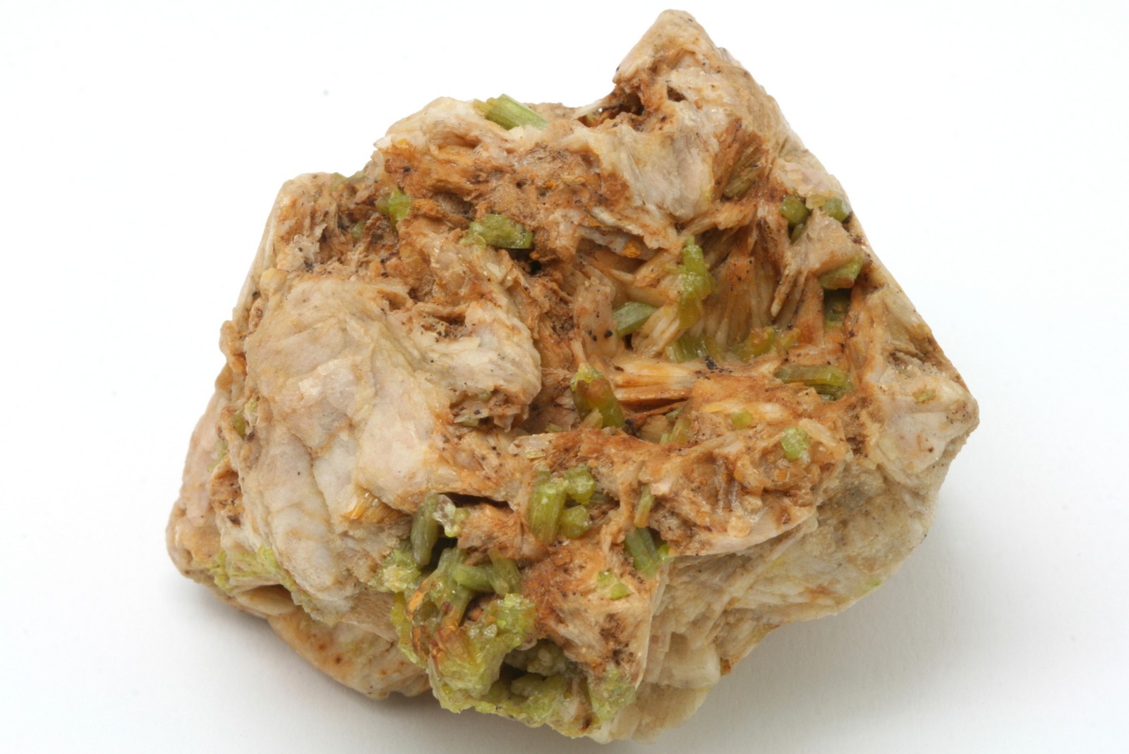 Sample with several yellow-green, locally up to 8 mm pyromorphite crystals.