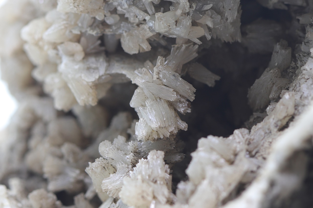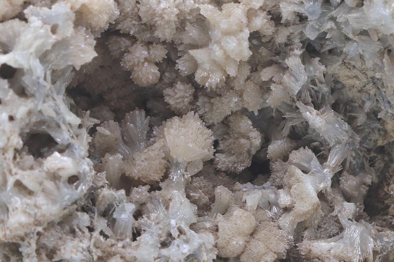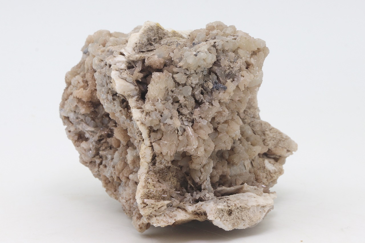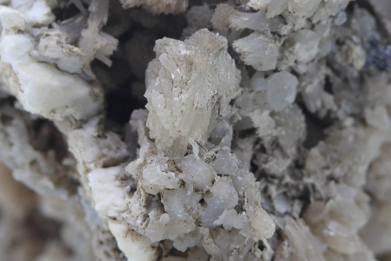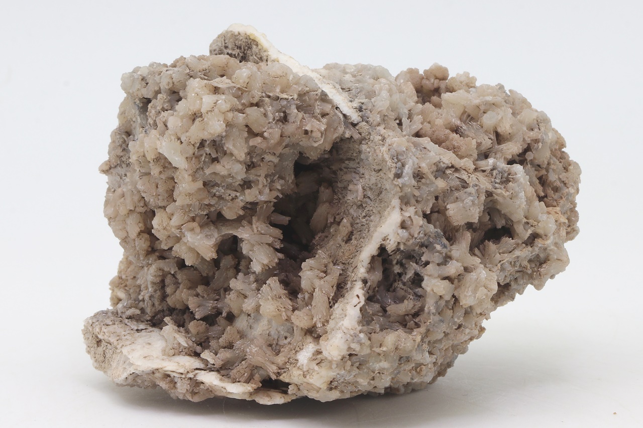 Dual-sided sample richly overgrown with bundles and tufts of light gray Hemimorphite from a historic German location.